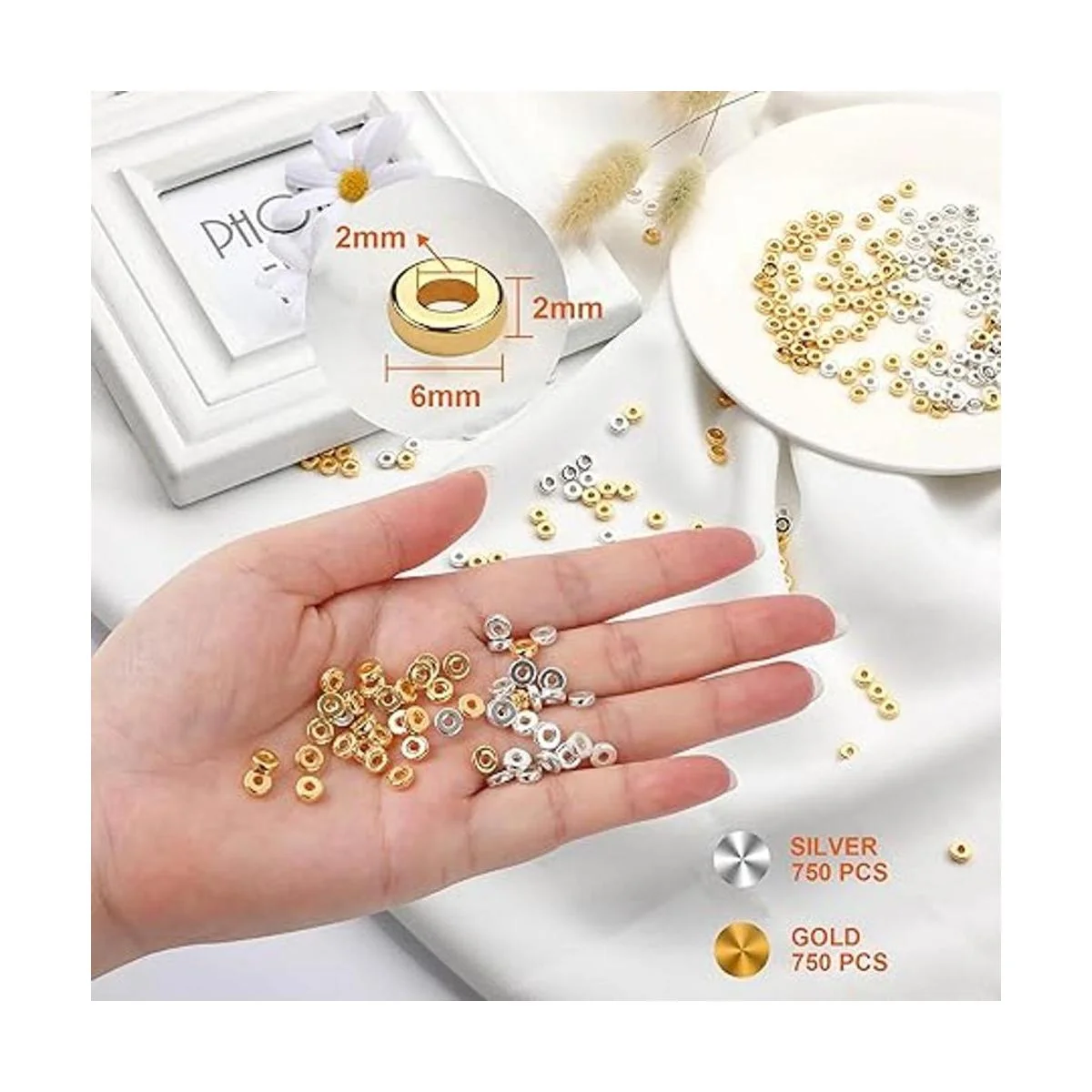 Cuentas a granel: recibirás 1500 cuentas espaciadoras planas de 0.236 in, 750 piezas en oro y 750 piezas en plata, lo que es ideal para varias manualidades de joyería hechas a mano.