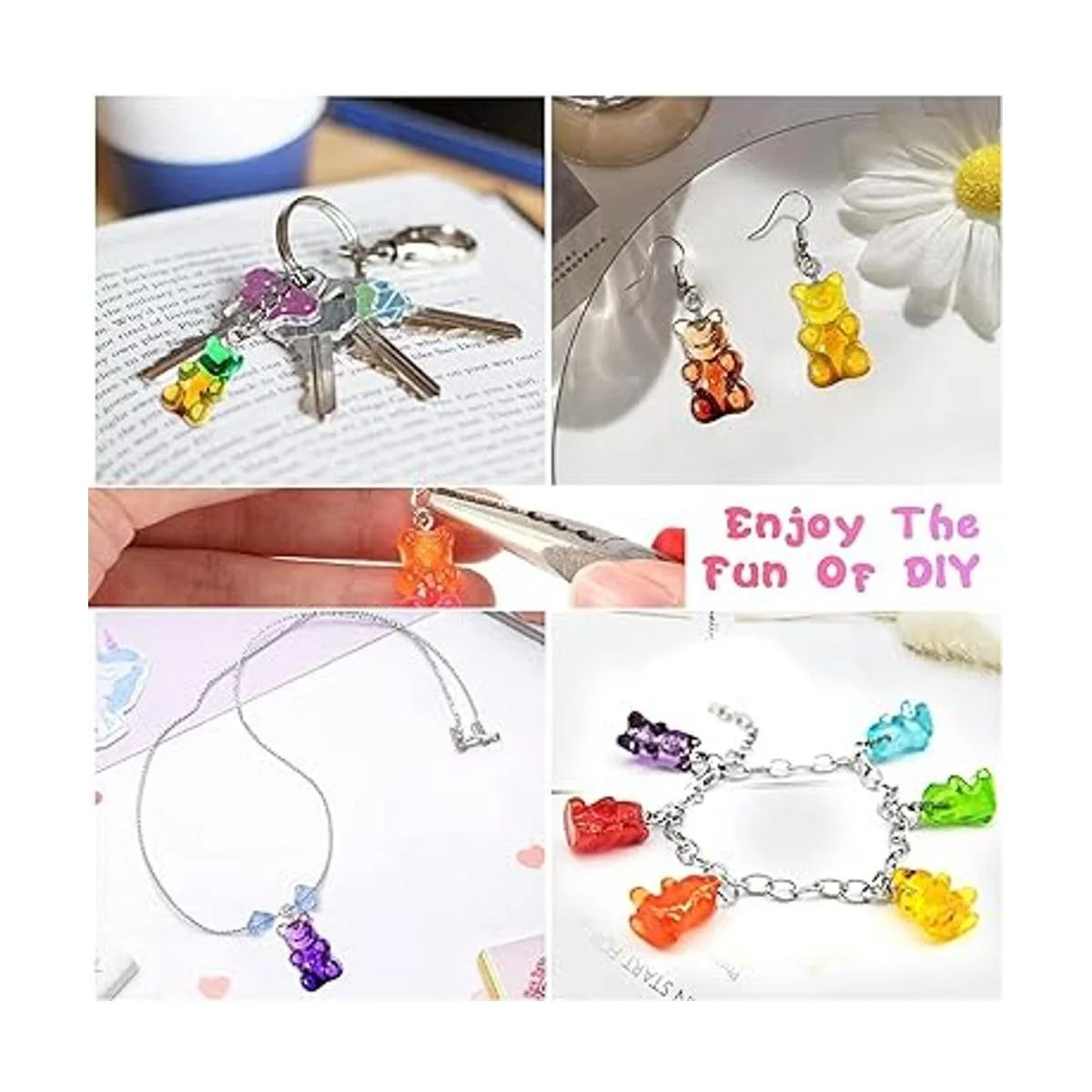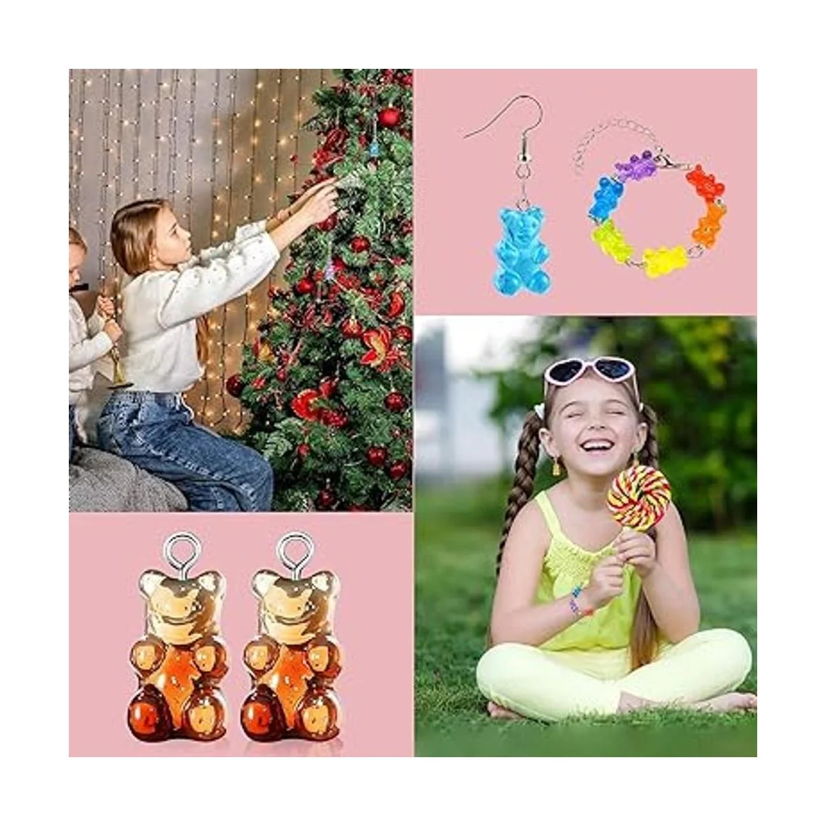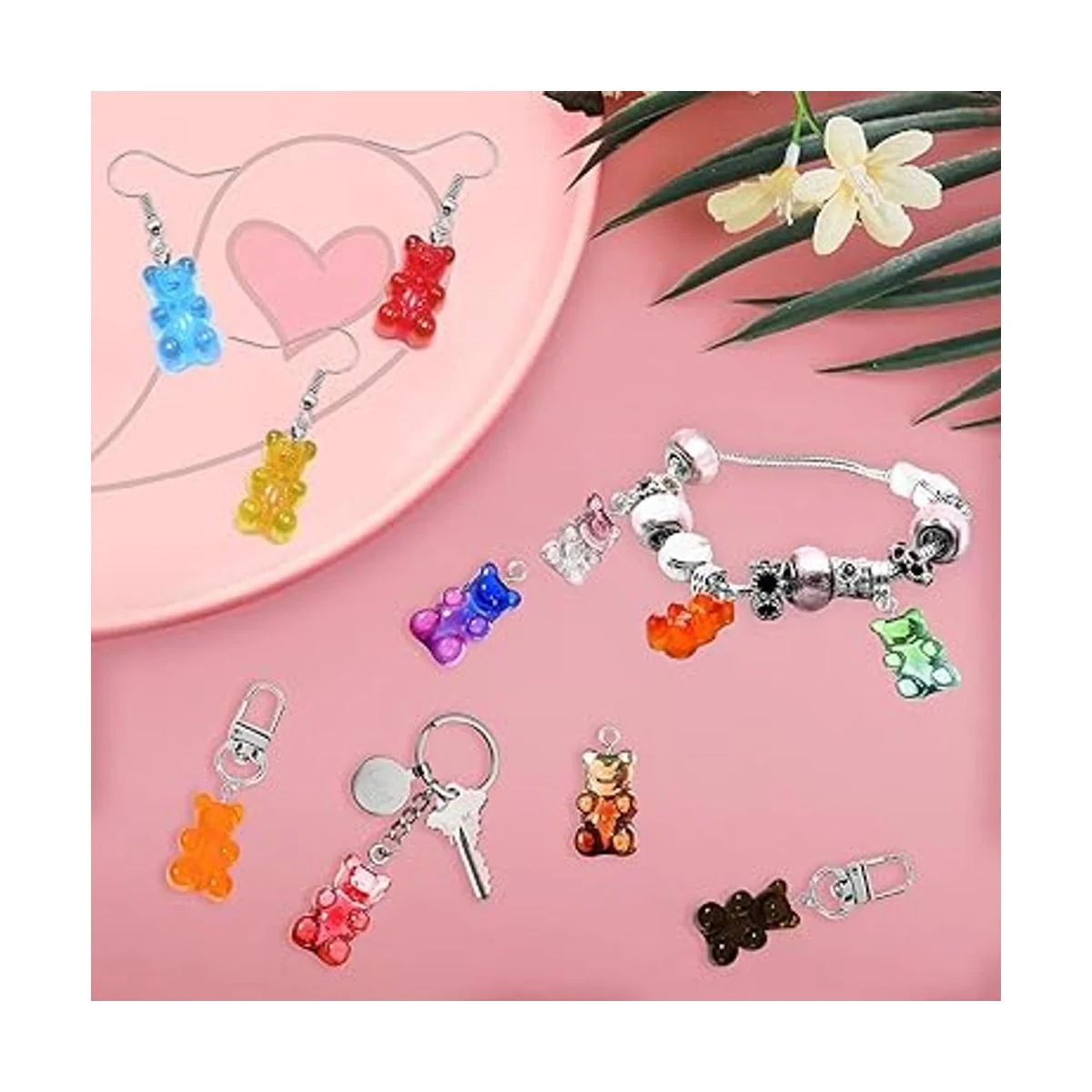Bonitos accesorios de bricolaje: estos coloridos colgantes de oso de resina de caramelo son perfectos para manualidades que tienen un anillo de metal en la parte superior para que sea fácil colgarlos en joyas de bricolaje, collares, pulseras, hebillas de pelo, llaveros, aretes, cadenas de teléfono, etc. Perfecto como regalo de cumpleaños o Navidad para tus amigos y niños.