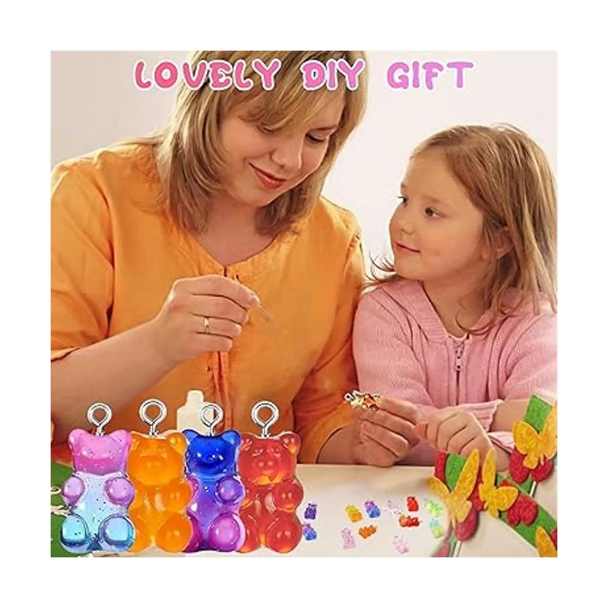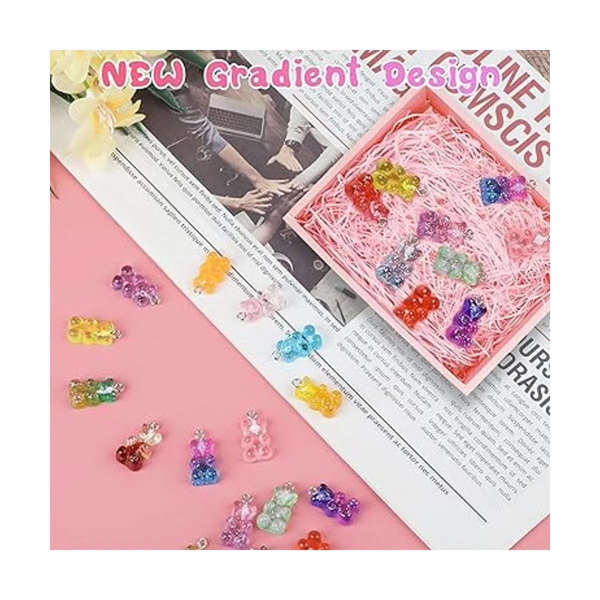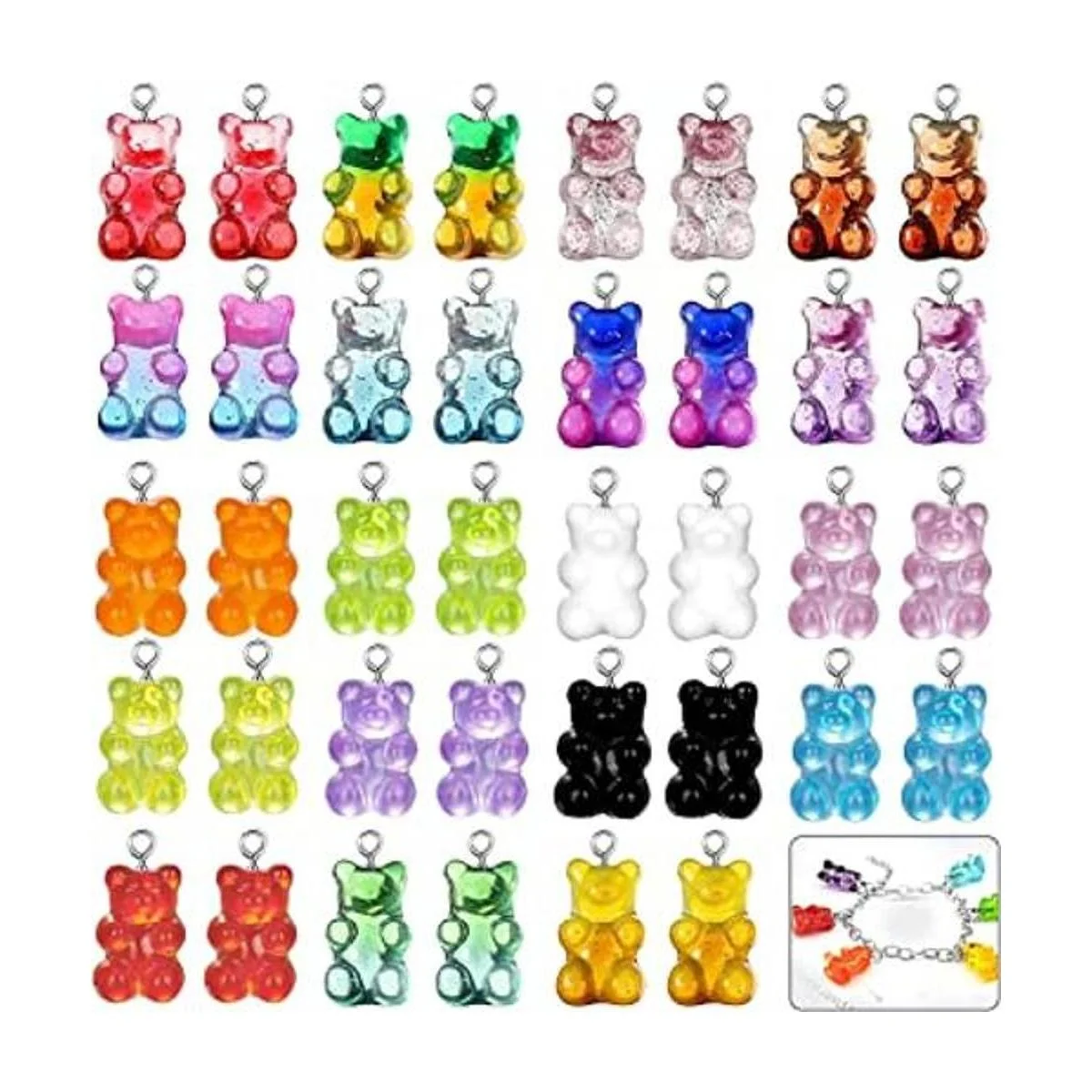 Bonitos accesorios de bricolaje: estos coloridos colgantes de oso de resina de caramelo son perfectos para manualidades que tienen un anillo de metal en la parte superior para que sea fácil colgarlos en joyas de bricolaje, collares, pulseras, hebillas de pelo, llaveros, aretes, cadenas de teléfono, etc. Perfecto como regalo de cumpleaños o Navidad para tus amigos y niños.