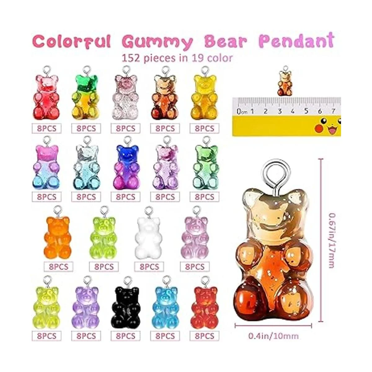 Juego de 152 piezas coloridas: el paquete viene con 152 colgantes de bonito oso en 19 colores diferentes, dos estilos, cada color viene en 8 piezas, brillante y hermoso, cantidad suficiente y colores variados que pueden satisfacer la mayoría de tus necesidades a juego en la vida diaria.