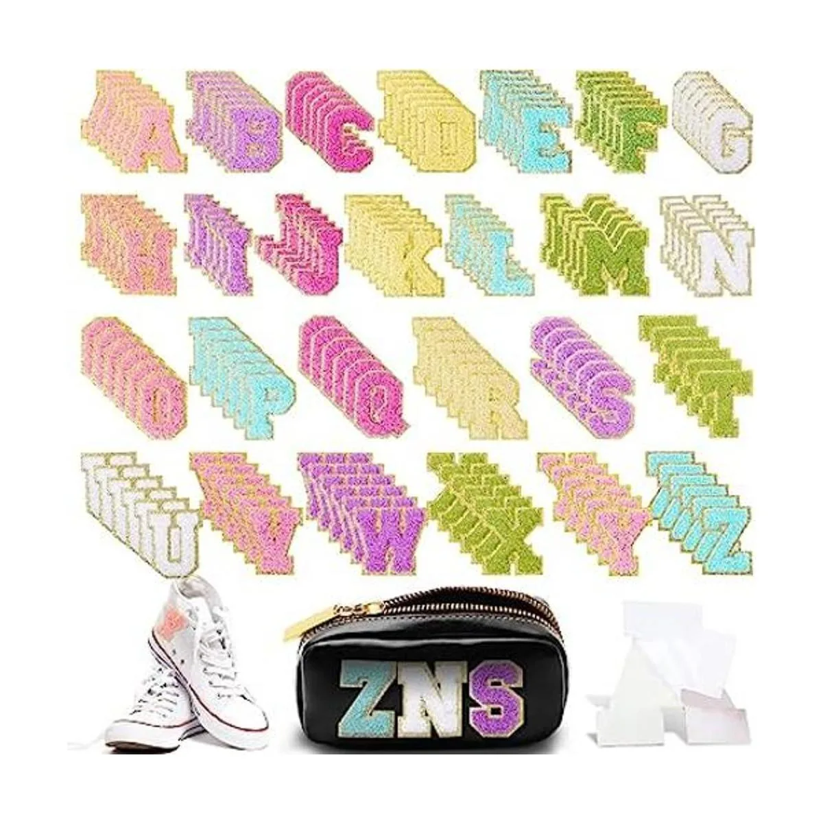 156 parches de letras de felpilla autoadhesivos, 6 juegos de parches de trébol de piedra de la A a la Z, parches de preparación, letras de felpilla para bricolaje, bolsas de teléfono, mochilas, sombreros unicornio