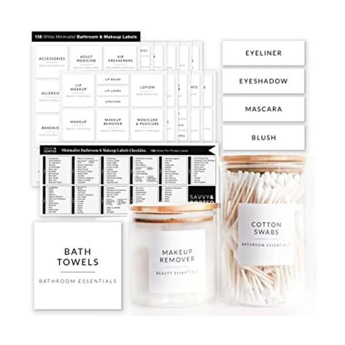 Organización del baño: 158 etiquetas adhesivas para contenedores de almacenamiento de baño para completar el estilo minimalista de etiquetas en toda tu casa ordenada.