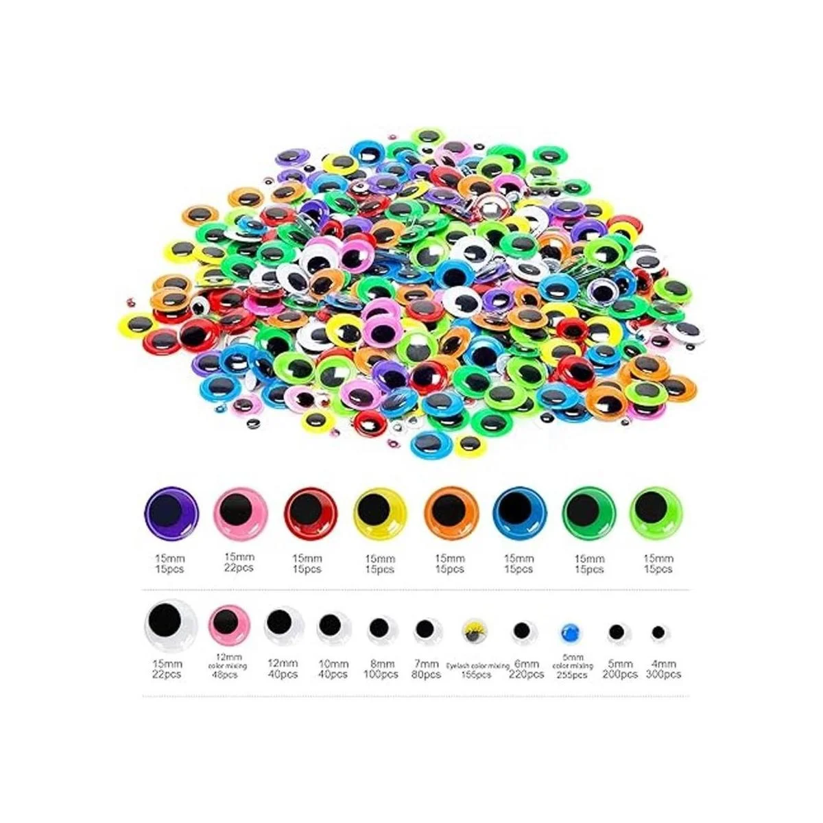 1580 unidades Googly Eyes autoadhesivas para manualidades, calcomanías de manualidades con ojos ondulantes multicolor y tamaños para bricolaje