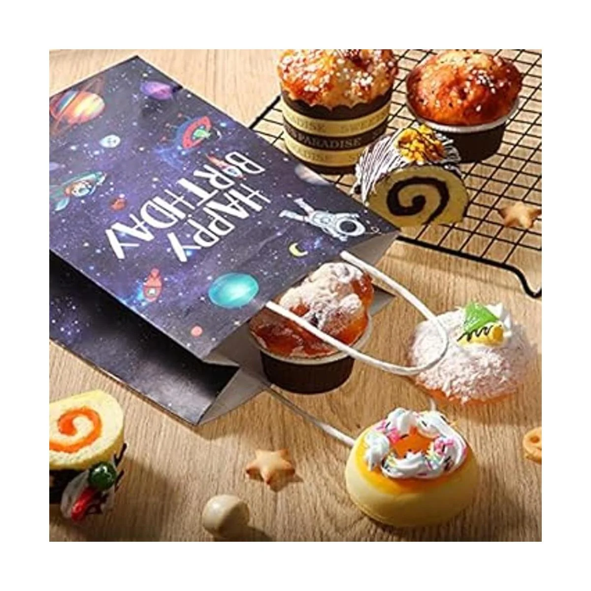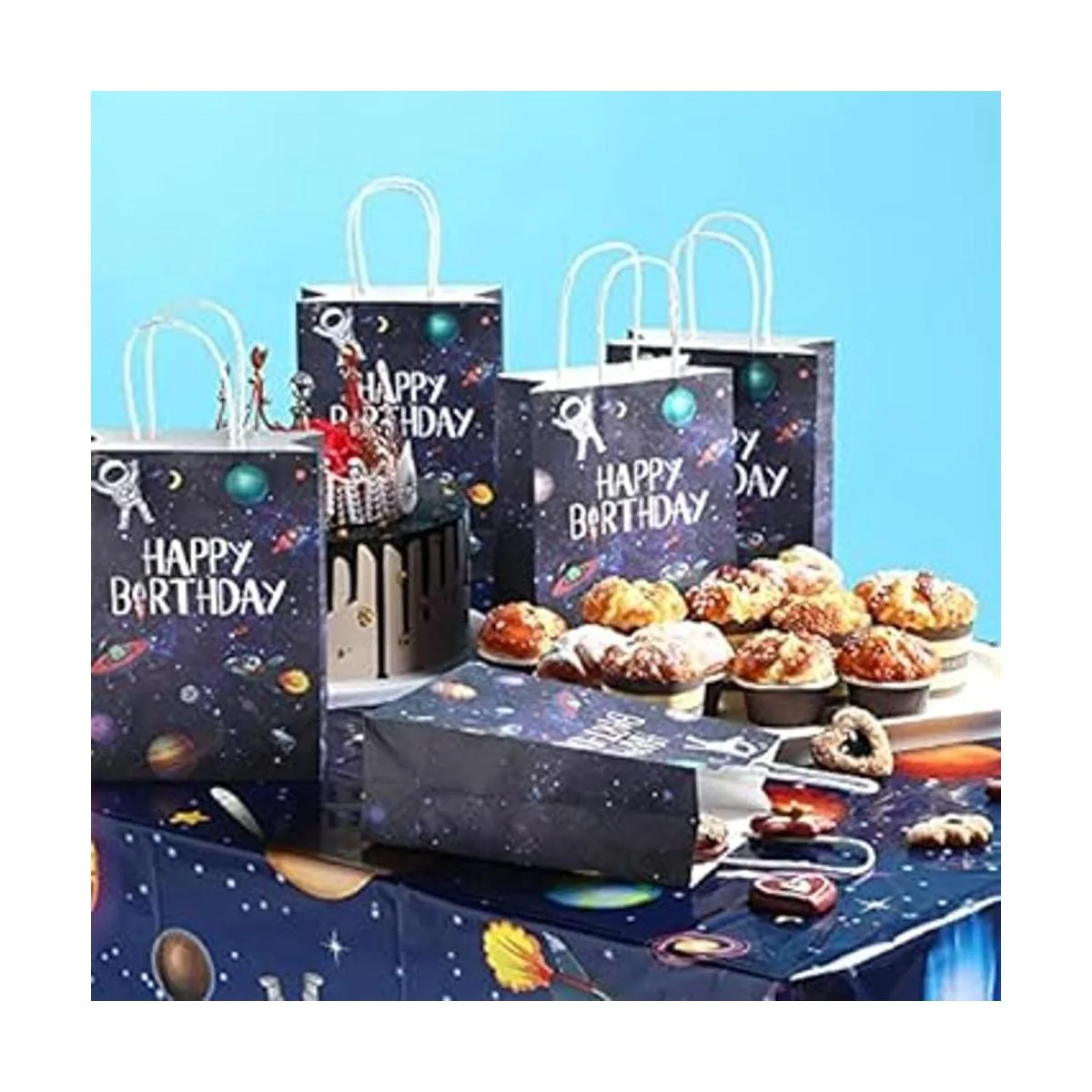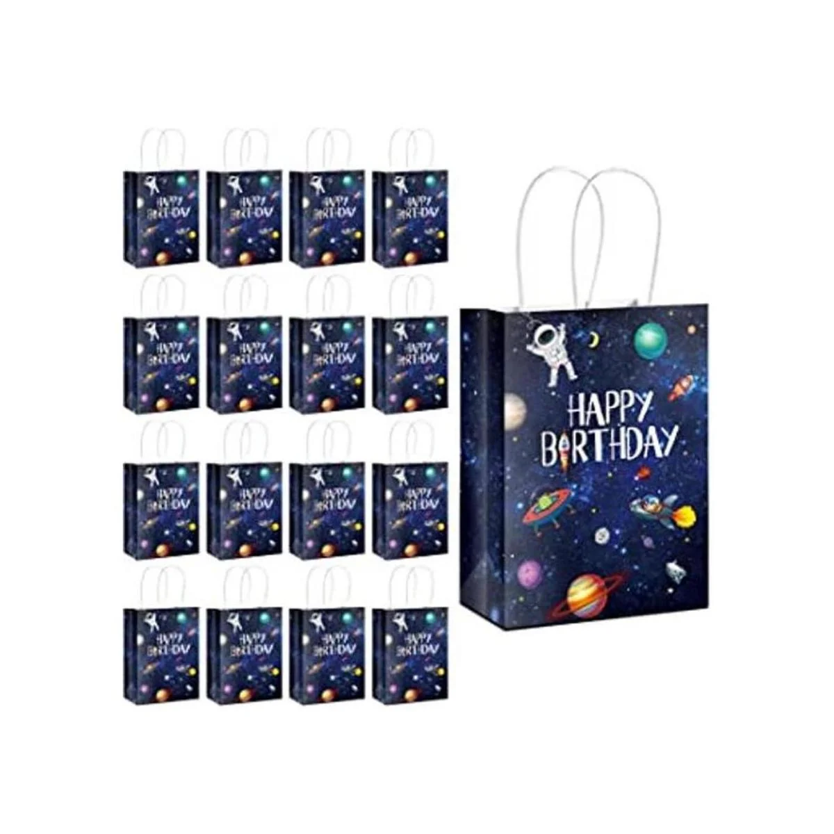 16 bolsas de regalo con asas de papel kraft planeta galaxia signo de fiesta, bolsas de regalo para niños, niñas, cumpleaños, espacio temático