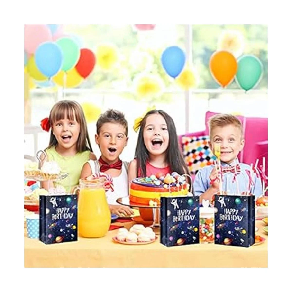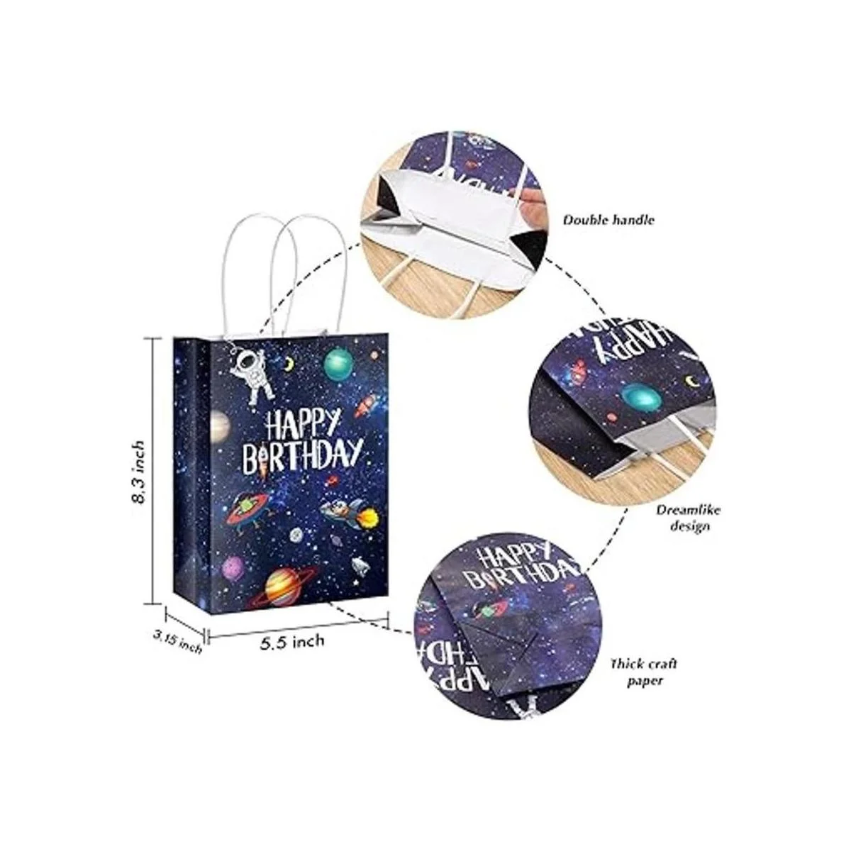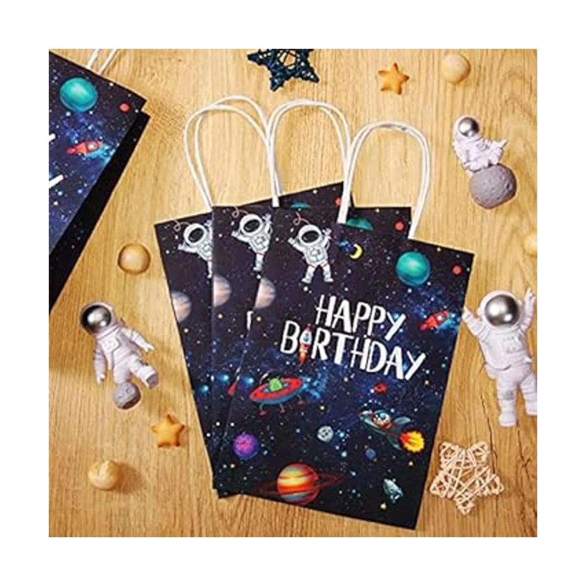 16 bolsas de regalo con asas de papel kraft planeta galaxia signo de fiesta, bolsas de regalo para niños, niñas, cumpleaños, espacio temático