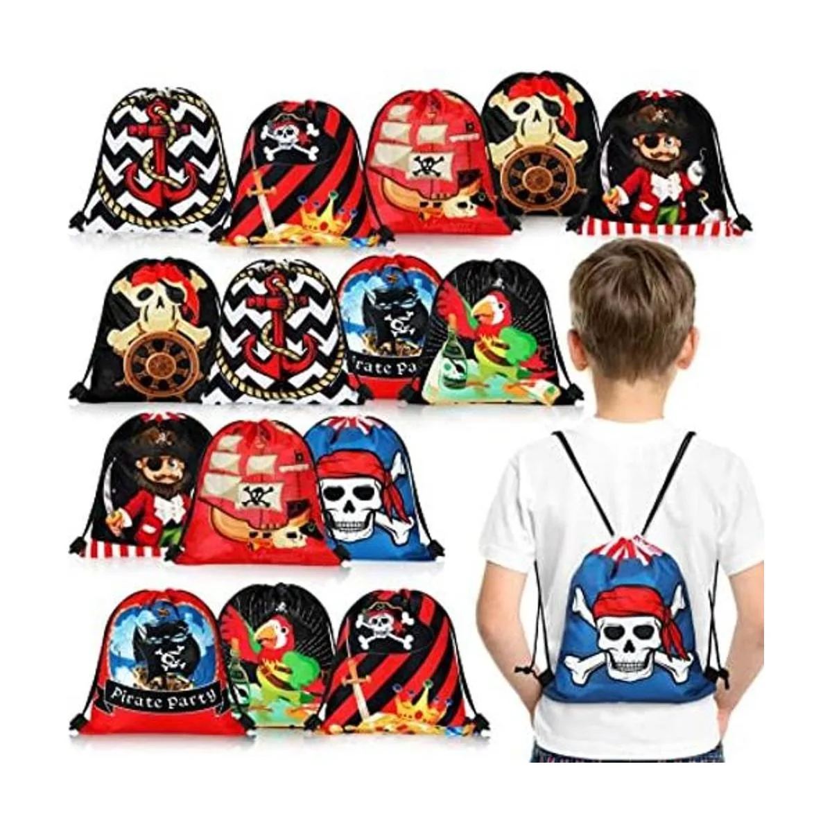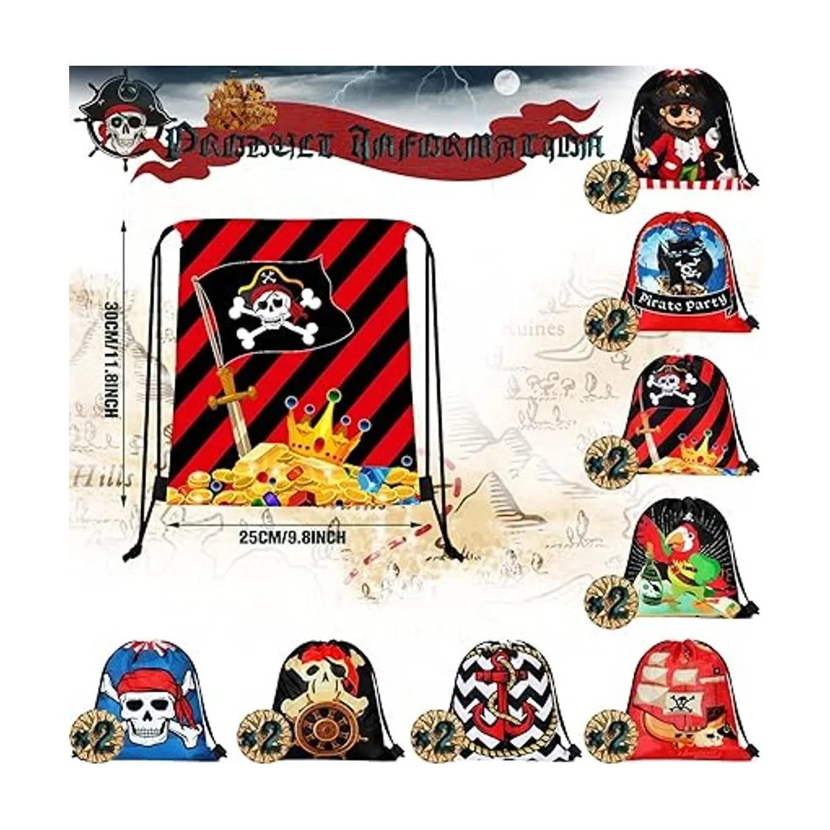 Tema pirata: estas bolsas de regalo con cordón pirata impresas con patrón de esqueleto, se ven lindas y frescas, los colores brillantes les dan más encanto, fácil de atraer la atención de los demás, con un cordón para proteger los artículos de caídas, amados por los amantes de las fiestas de aventura