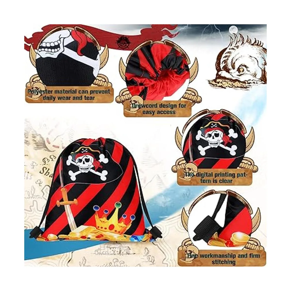 Amplia gama de usos: estas bolsas piratas con cordón se pueden aplicar ampliamente como bolsas de aperitivos, bolsas de compras, bolsas de regalo, bolsas de almacenamiento, bolsas de aperitivos, etc., para fiestas de cumpleaños, fiestas temáticas, Halloween, celebraciones de vacaciones, etc