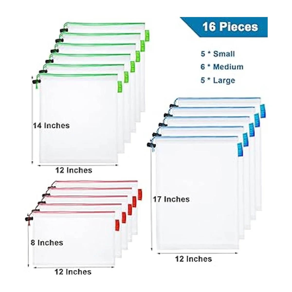 Bolsas de rompecabezas para almacenamiento de niños: Incluye 16 bolsas pequeñas de almacenamiento de juguetes, 5 bolsas pequeñas con cordón rojo: 12 x 8 pulgadas, 6 bolsas medianas con cordón verde: 12 x 14 pulgadas, 5 bolsas grandes con cordón azul: 12 x 17 pulgadas, cordón de color para una identificación cómoda