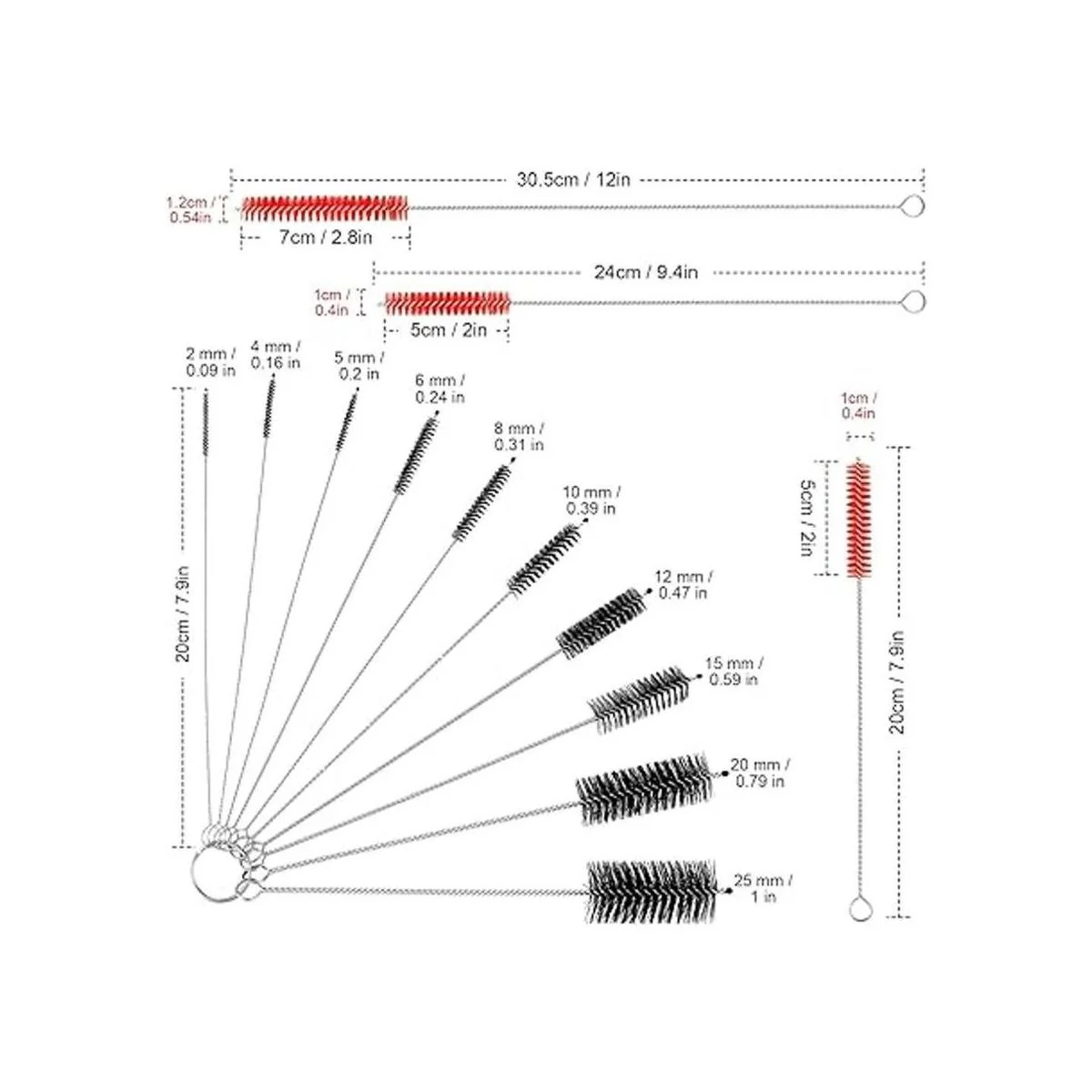 16 cepillos de limpieza extra largos de nailon para botellas de limpieza, kit de limpieza de tubos, herramienta de limpieza reutilizable para botellas de diferentes tamaños rojonegro, 16 piezas