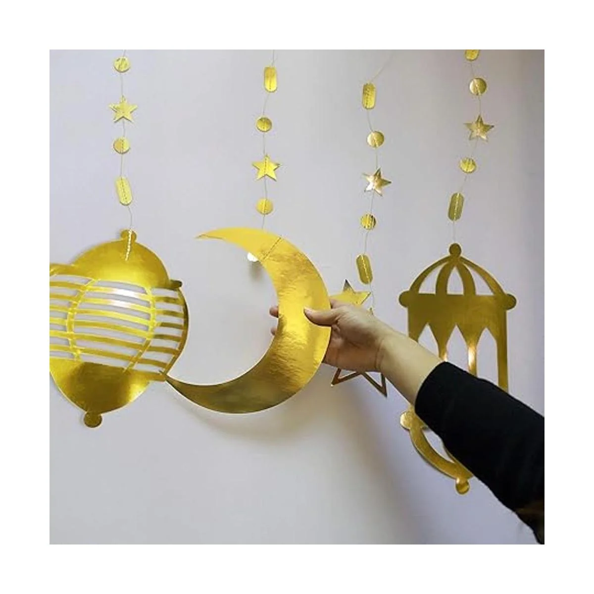 16 faroles islámicos de luna creciente, guirnalda de Ramadán, decoración EID para el hogar, feliz Ramadán, Mubarak para fiesta, serpentina colgante, telón de fondo, pancarta de Aladdin, suministros para fiesta de cumpleaños