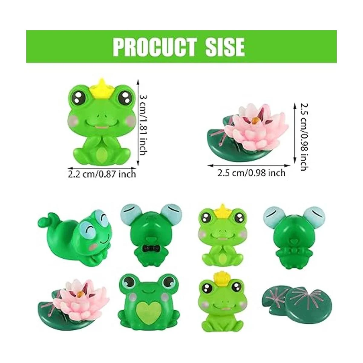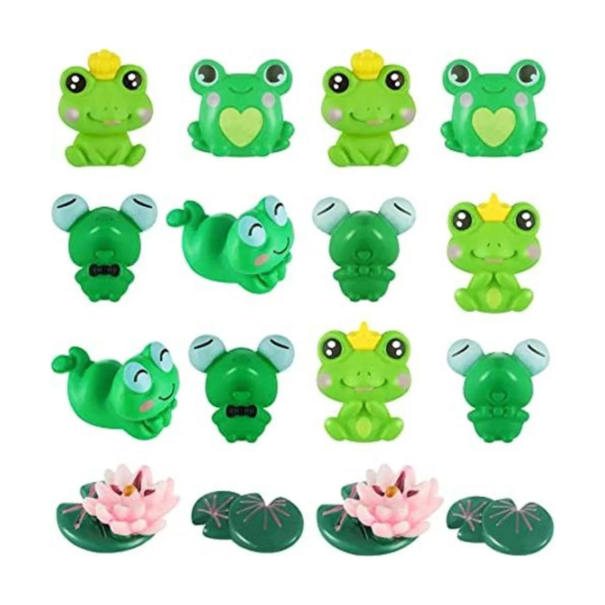 16 figuras en miniatura de rana y loto de resina, mini adorno de jardín, modelo de animales, jardín, miniatura, musgo, paisaje, manualidades, accesorios de rana, fiesta, suministros para el hogar, macetas