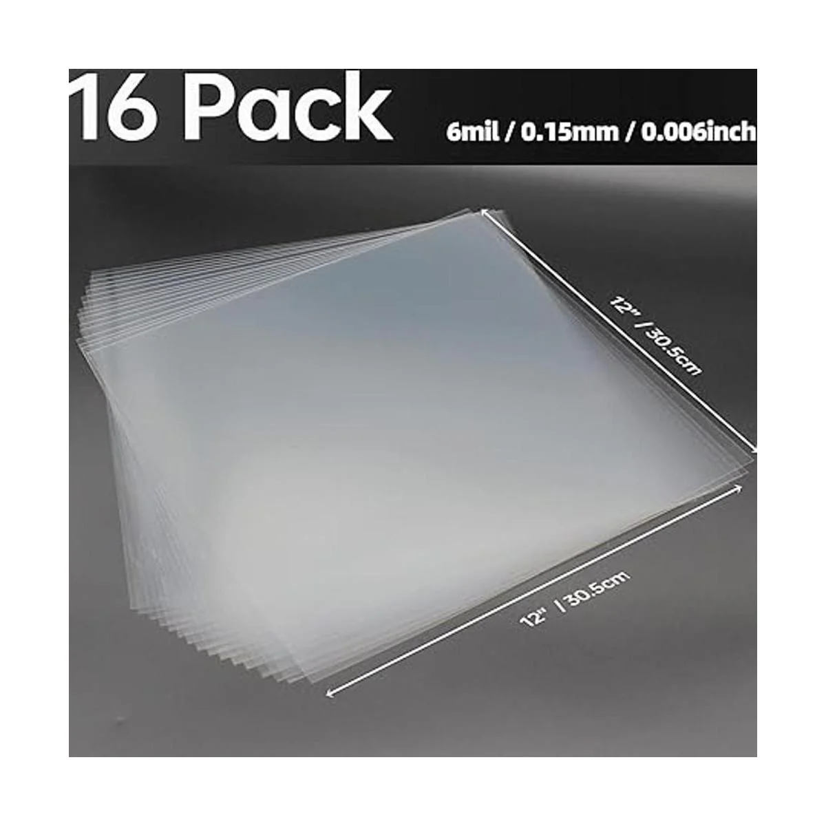 16 hojas de plantillas de Mylar en blanco de 6 mil, hojas de plástico transparente de 12 x 12 pulgadas, hojas de acetato transparente para manualidades Cricut, hojas de plástico transparente para manualidades y máquinas de corte 6 mil