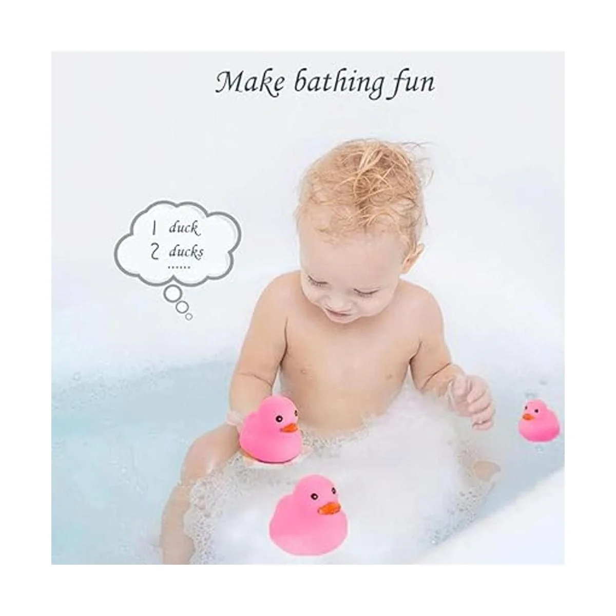Patos de goma rosa : el juego contiene 16 patos rosas del mismo tamaño. El tamaño es de 2.2 pulgadas de largo x 2 pulgadas de ancho x 1.8 pulgadas de alto. Es perfecto para las manos pequeñas de tu bebé.