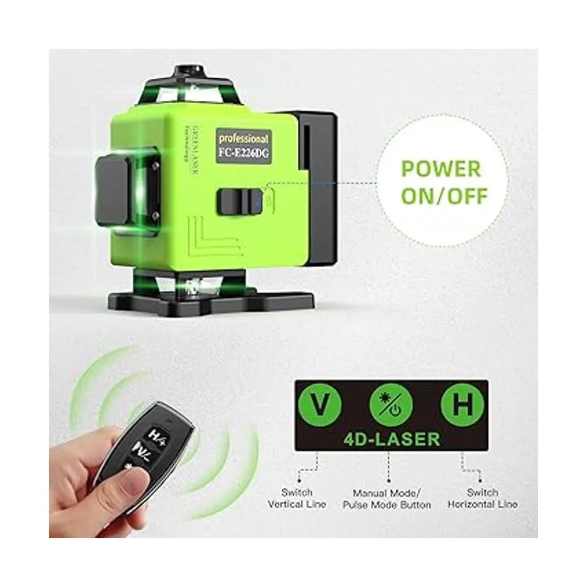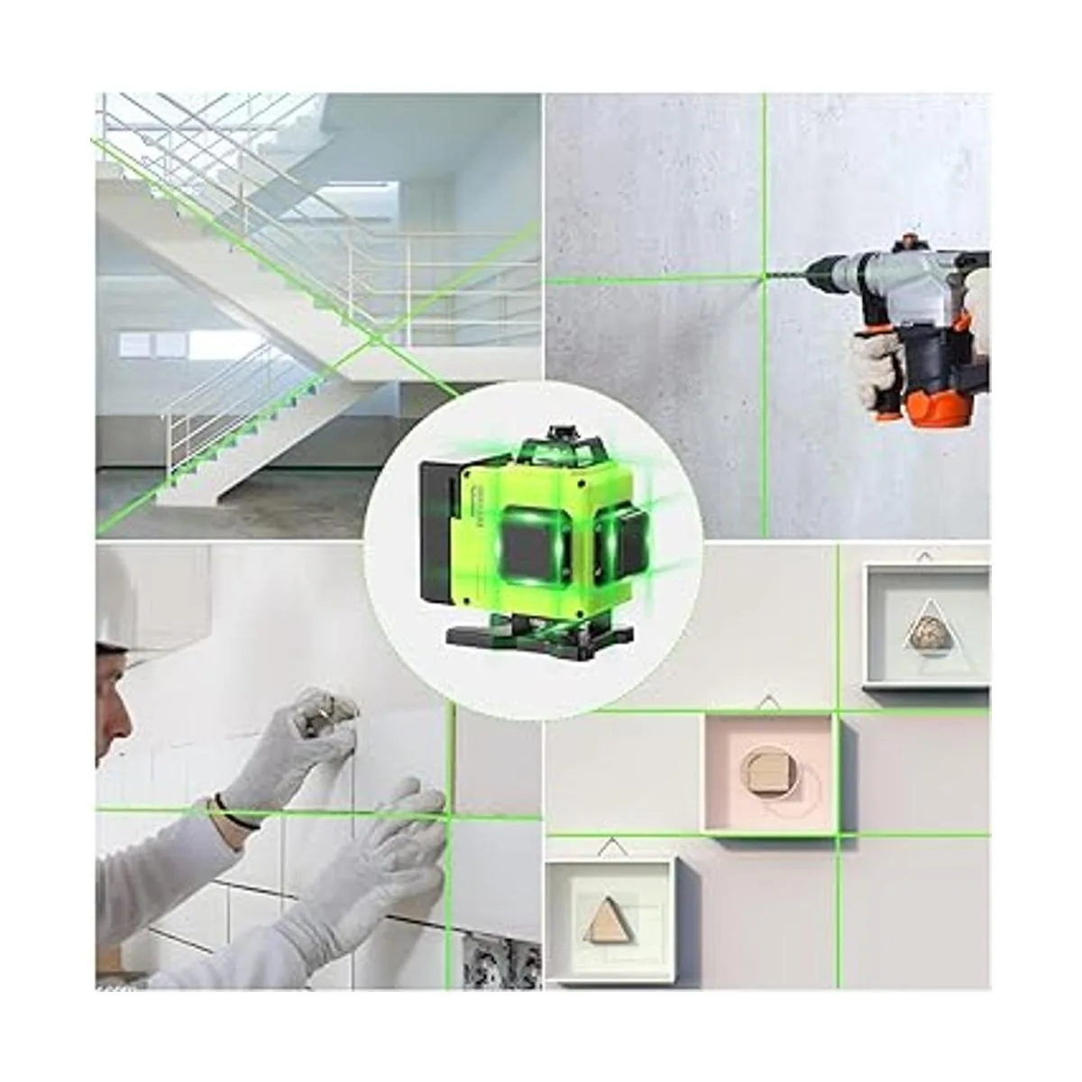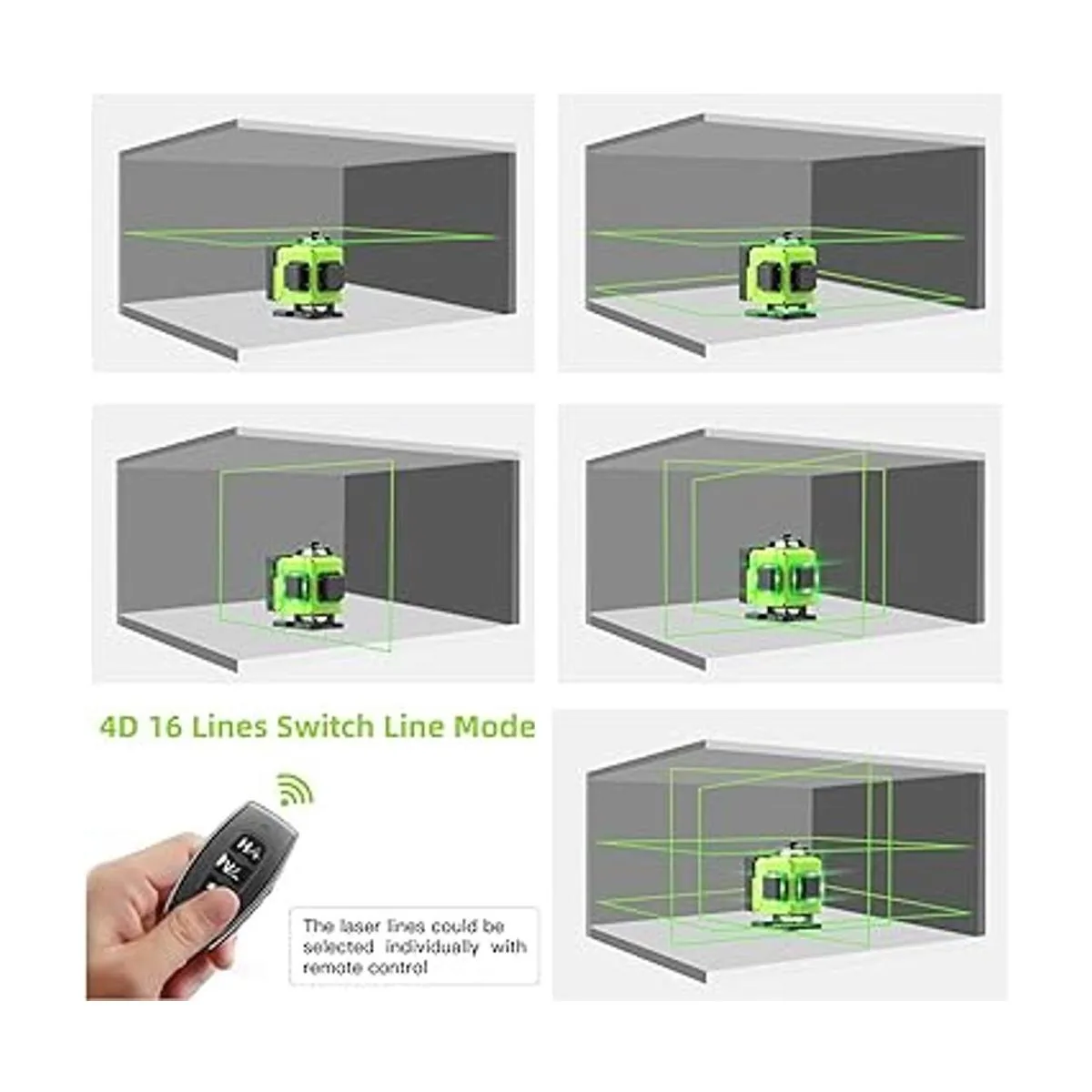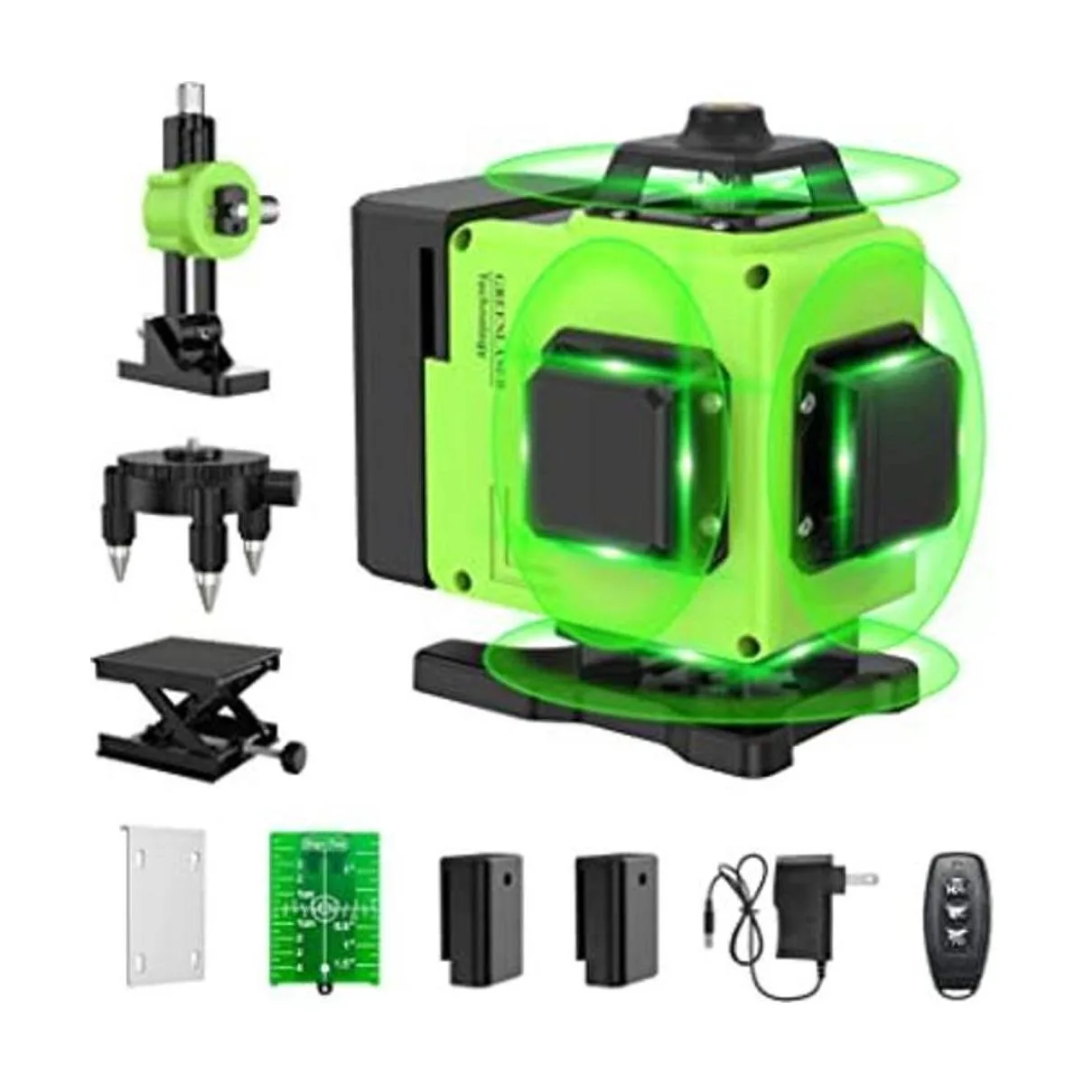 16 líneas de nivel láser autonivelante, herramienta de nivel Lazer de línea cruzada de haz verde 4D 4×360 con 2 baterías recargables, kit de herramientas láser de línea horizontal y vertical de 360, color verde