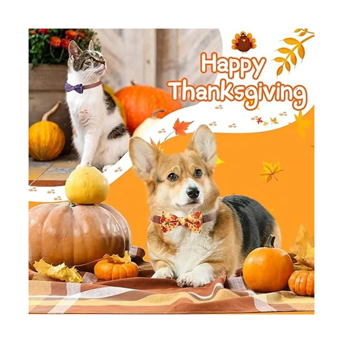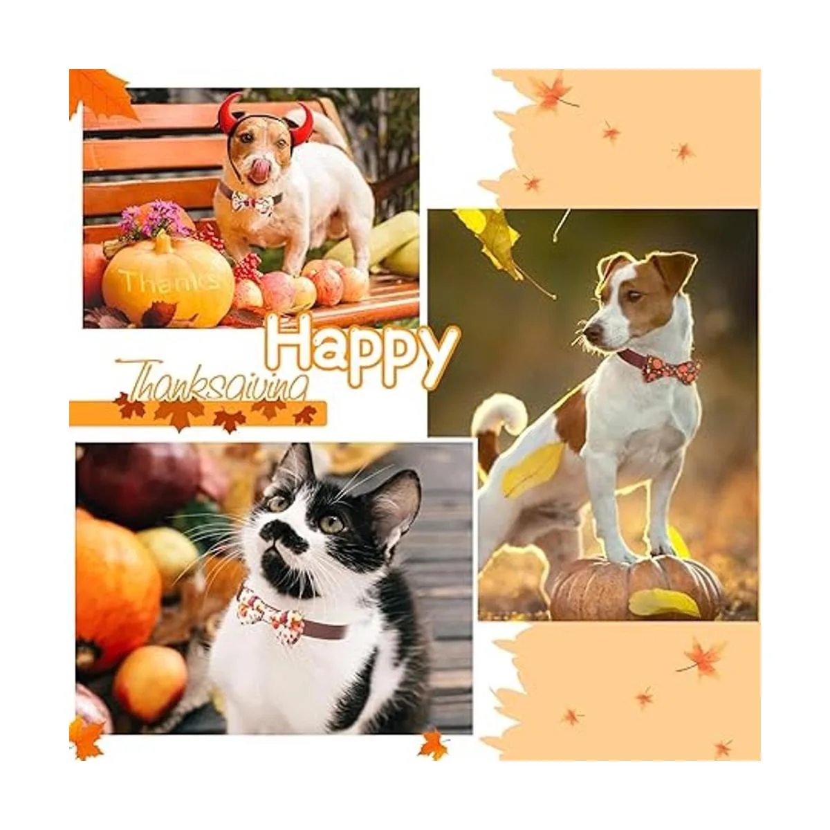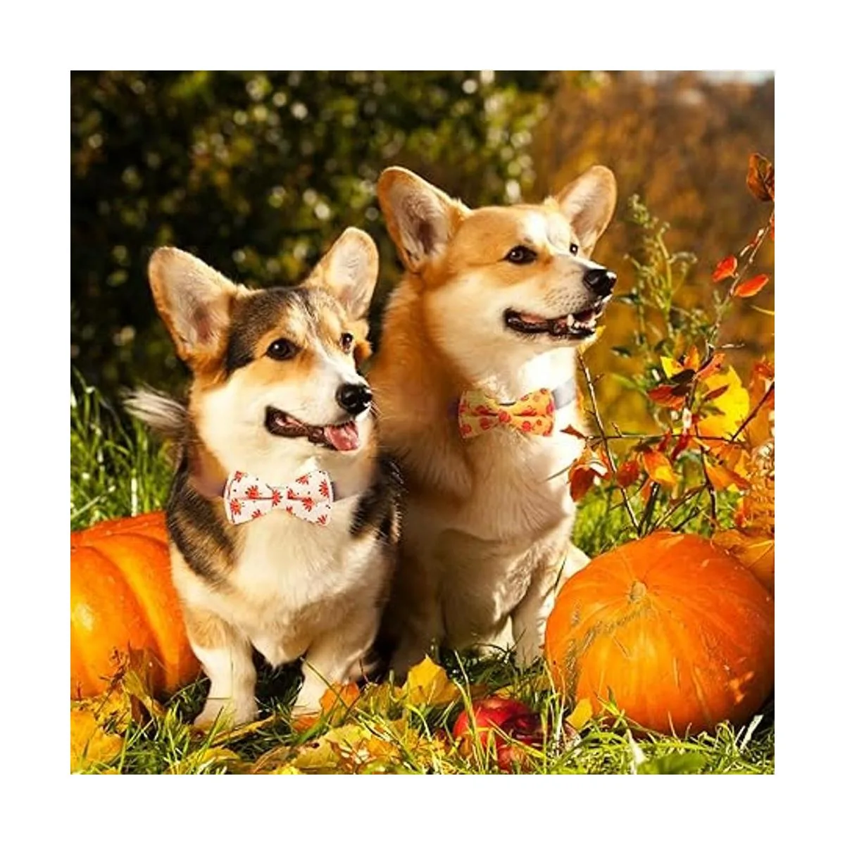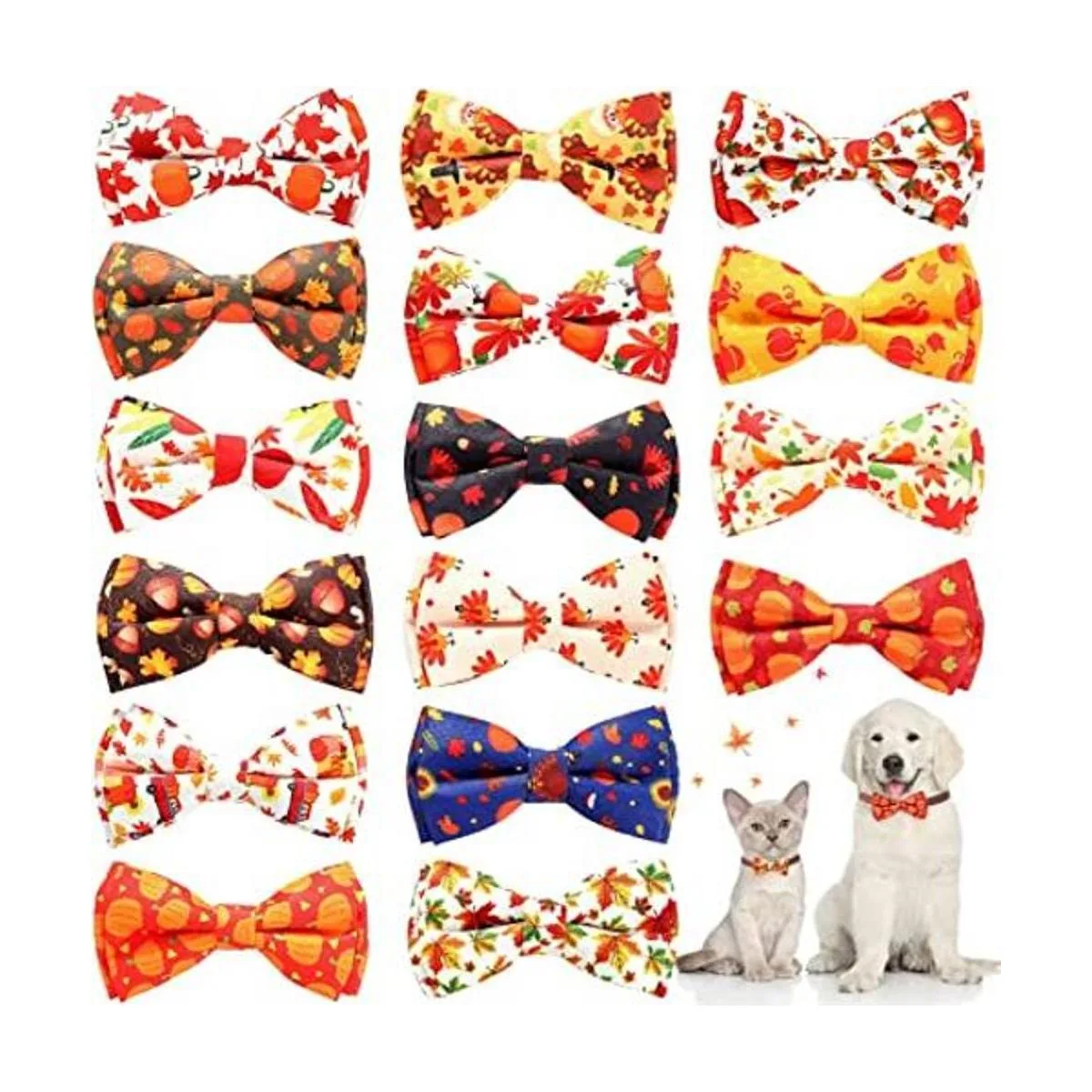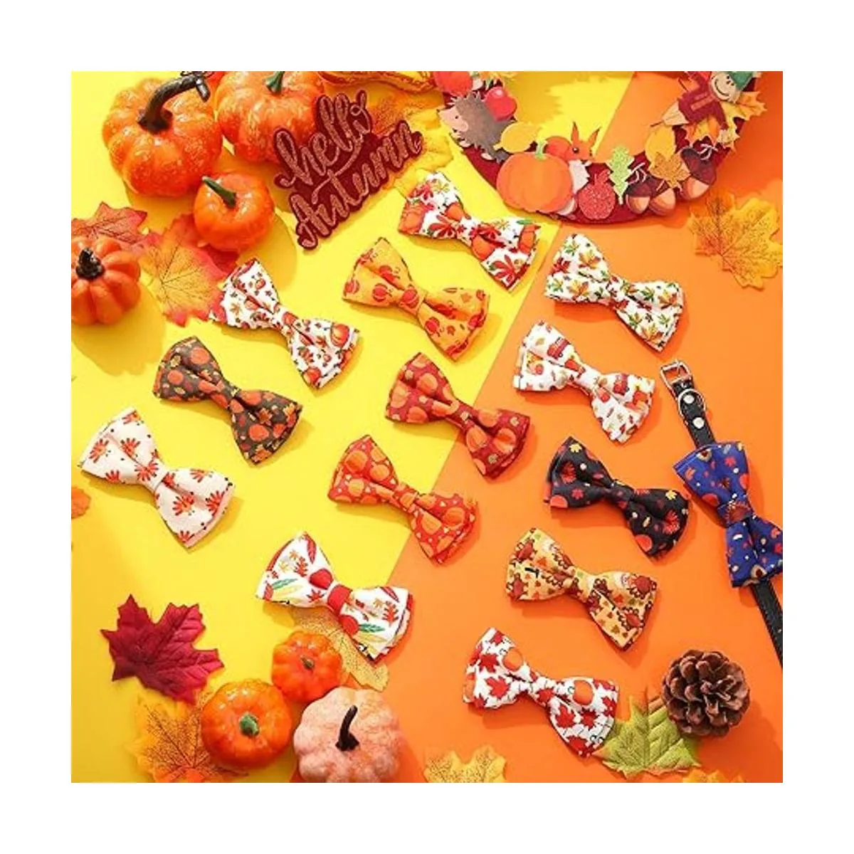 16 piezas de accesorios para el collar de corbatín para mascotas, diseño de hoja de arce, calabaza, pavo, corbatas para perro, para el día de Acción de Gracias, otoño y otoño hoja de arce