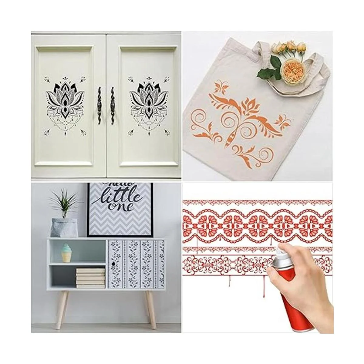 Cómodo de usar: elige una plantilla que planeas pintar, coloca la plantilla de pintura de mandala floral en una superficie plana y limpia, utiliza pinturas, almohadillas, aerosoles, pintura acrílica en la superficie para dibujar a través de los recortes huecos de las plantillas, luego retira las plantillas, se completa una encantadora pintura