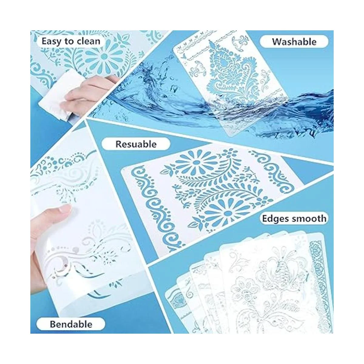Exquisita mano de obra: hechas de material PET de calidad, las plantillas de mandala son suaves al tacto sin borde puntiagudo, seguras de usar sin olor irritante, flexibles y reutilizables, no se rompen ni deforman fácilmente, se pueden aplicar repetidamente después del lavado