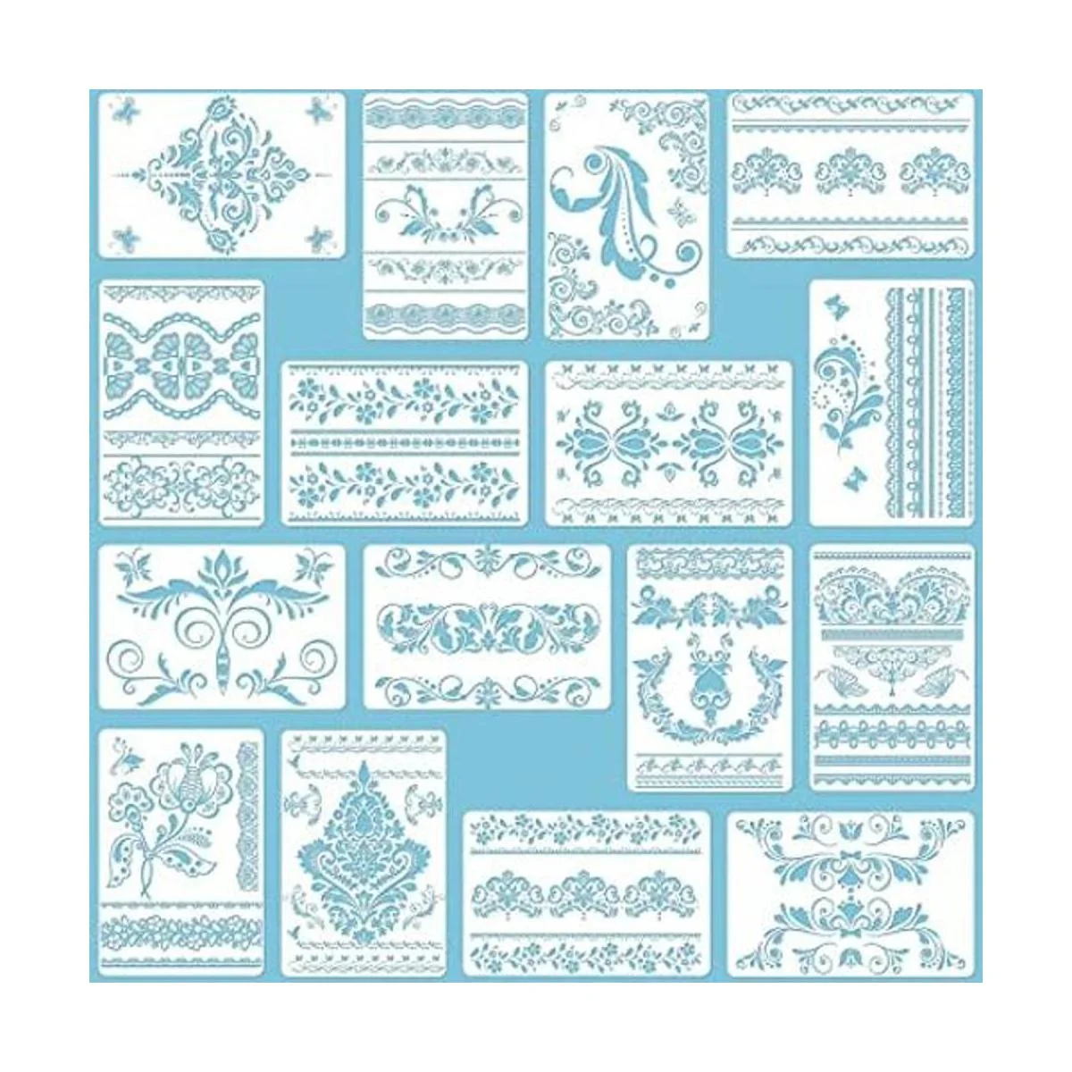 16 plantillas de borde de flores, plantillas de mandala, reutilizables, con diseño de mandala floral, corte láser, plantillas de pintura para bricolaje, azulejos de pared, muebles, lienzo, plantillas de manualidades para decoración de interiores al aire libre, 11.4 x 8.3 pulgadas