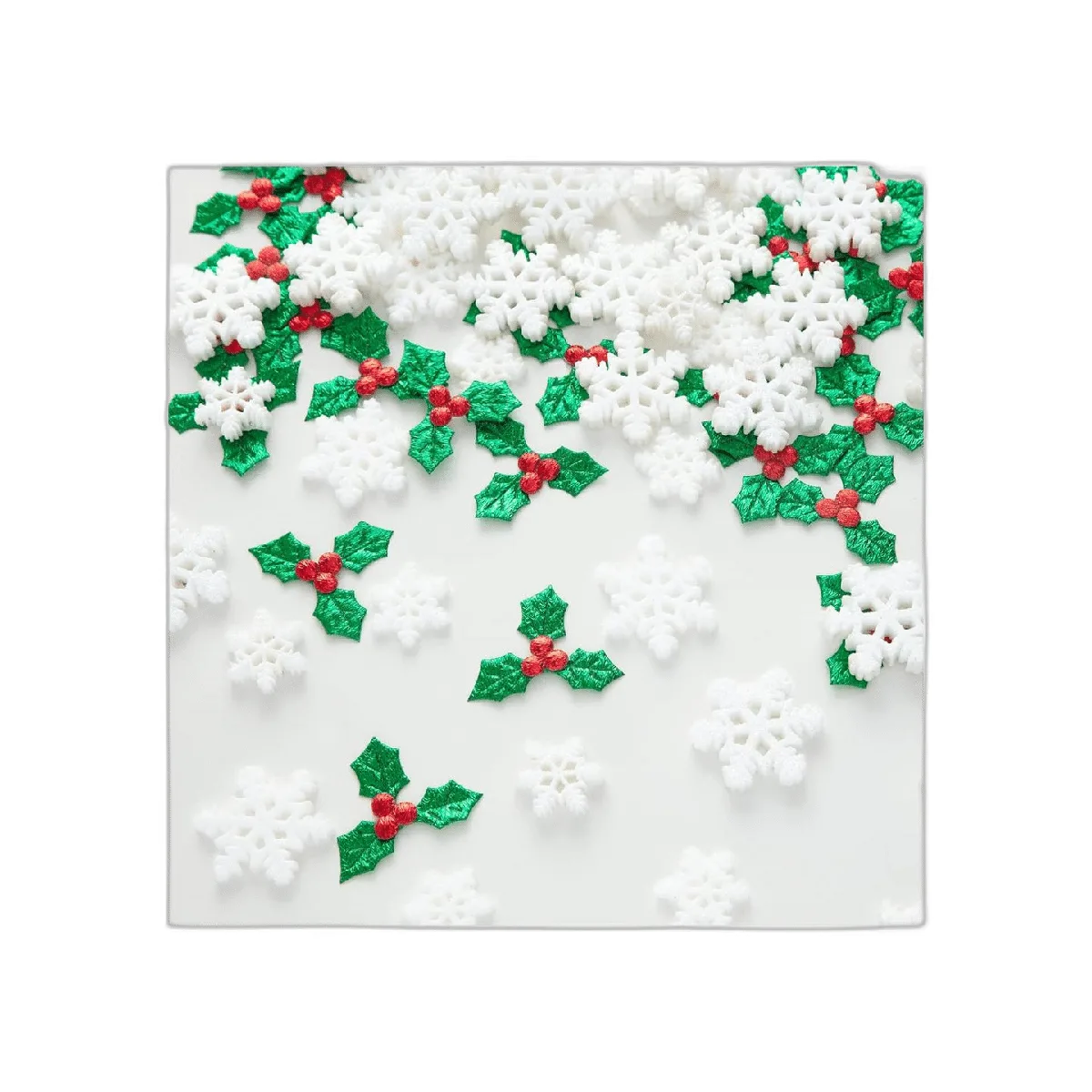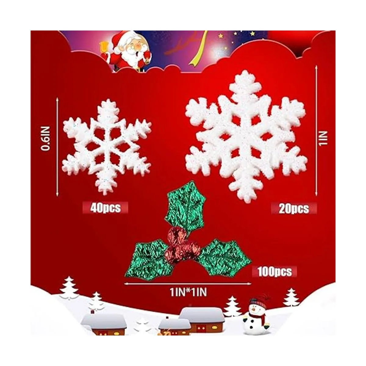 Lo que obtendrás: recibirás 40 copos de nieve de resina pequeños, 20 copos de nieve grandes y 100 hojas de acebo y bayas rojas. La cantidad suficiente te permite hacer proyectos de manualidades o compartir con tus amigos