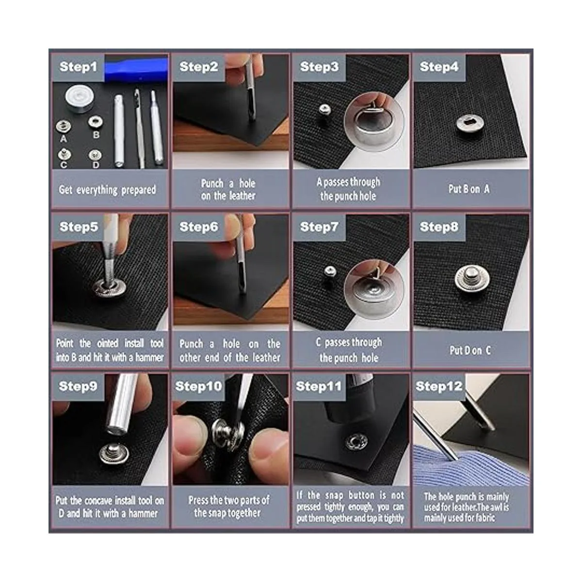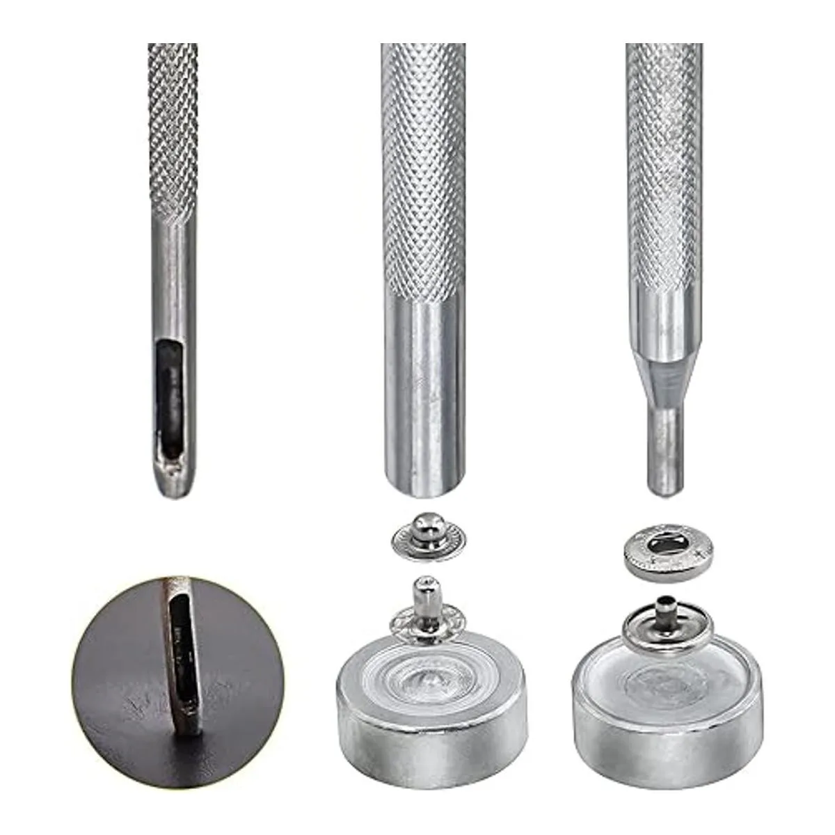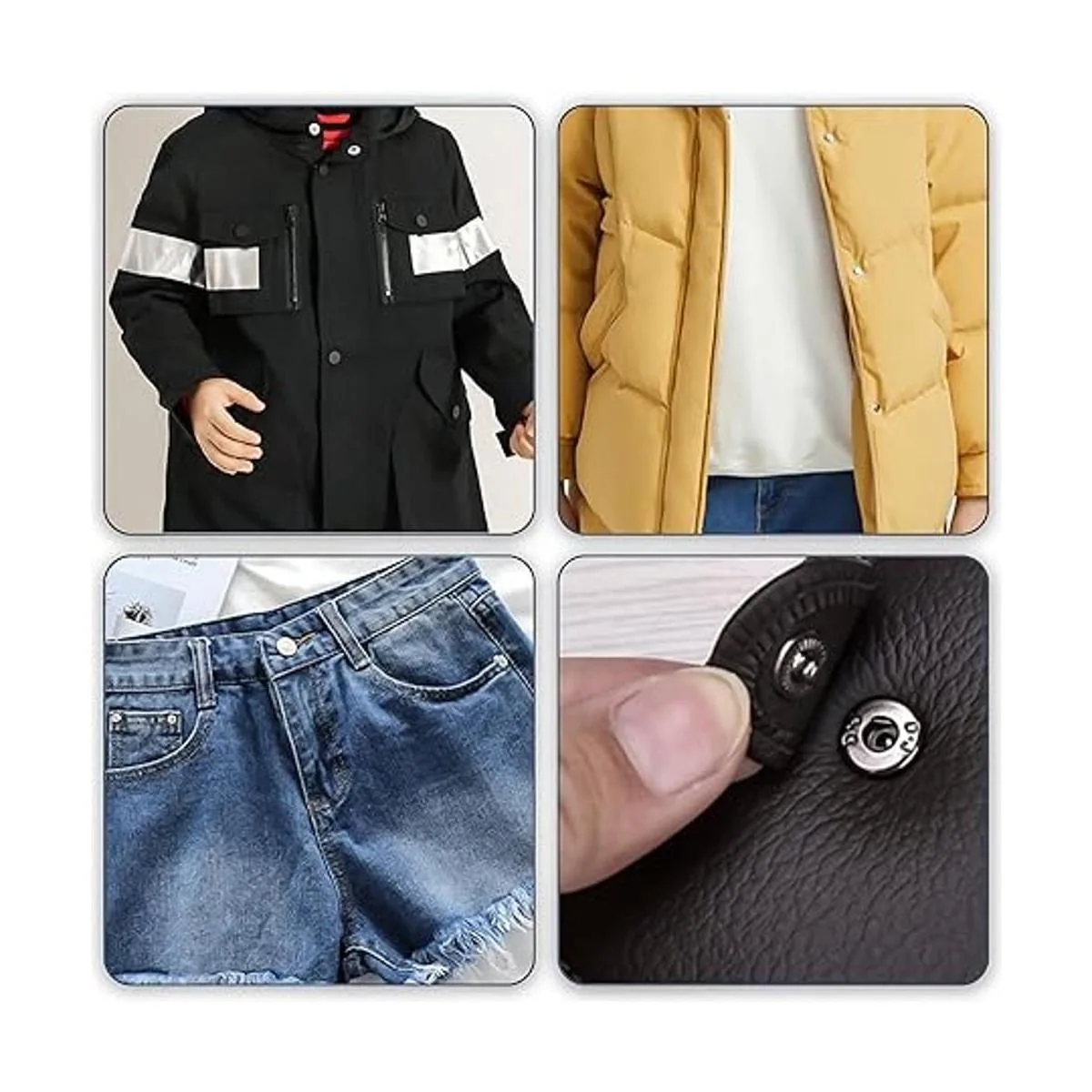 Amplia aplicación: este kit de botones a presión puede satisfacer tus diversas necesidades de decoración de cuero o suministros de reparación de ropa, como chaquetas, jeans, cinturones, sombreros, ropa de mascotas, bolsos, decoraciones de manualidades