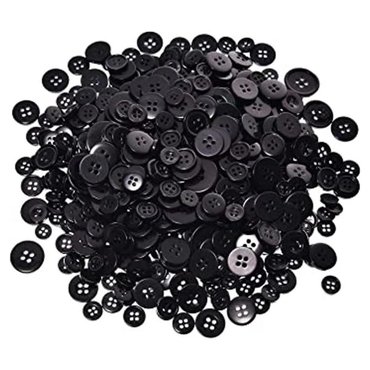1600 botones negros de manualidades para manualidades, varios tamaños, botones de arte a granel para manualidades, manualidades, manualidades, decoración de costura