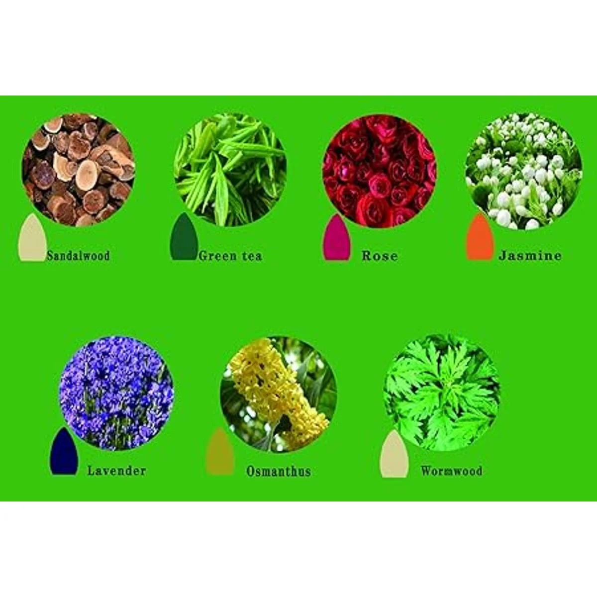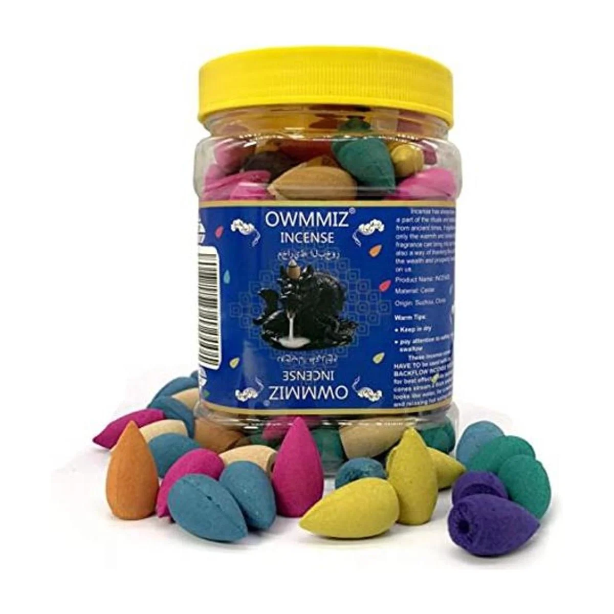 Contenido del paquete: 1 caja de 170 conos de incienso mixtos. Mezclado con 7 tipos de aromas, sándalo marrón, té verde verde, rosa rojo, lavanda morado, ajenjo marrón, jazmín naranja, osmanthus amarillo.