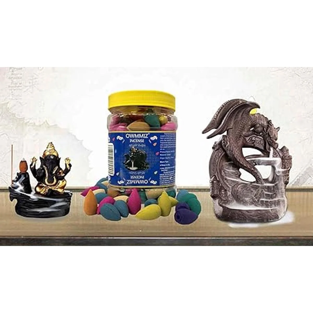 Cascada de incienso: el incienso de OWMMIZ está hecho completamente a mano y está hecho de manera tradicional, tardando aproximadamente una semana. Hecho de polvo de cedro y aceite vegetal natural, nuestro incienso hecho a mano se sumerge en aceite esencial durante al menos 40 horas y luego se seca al sol durante 720 horas.
