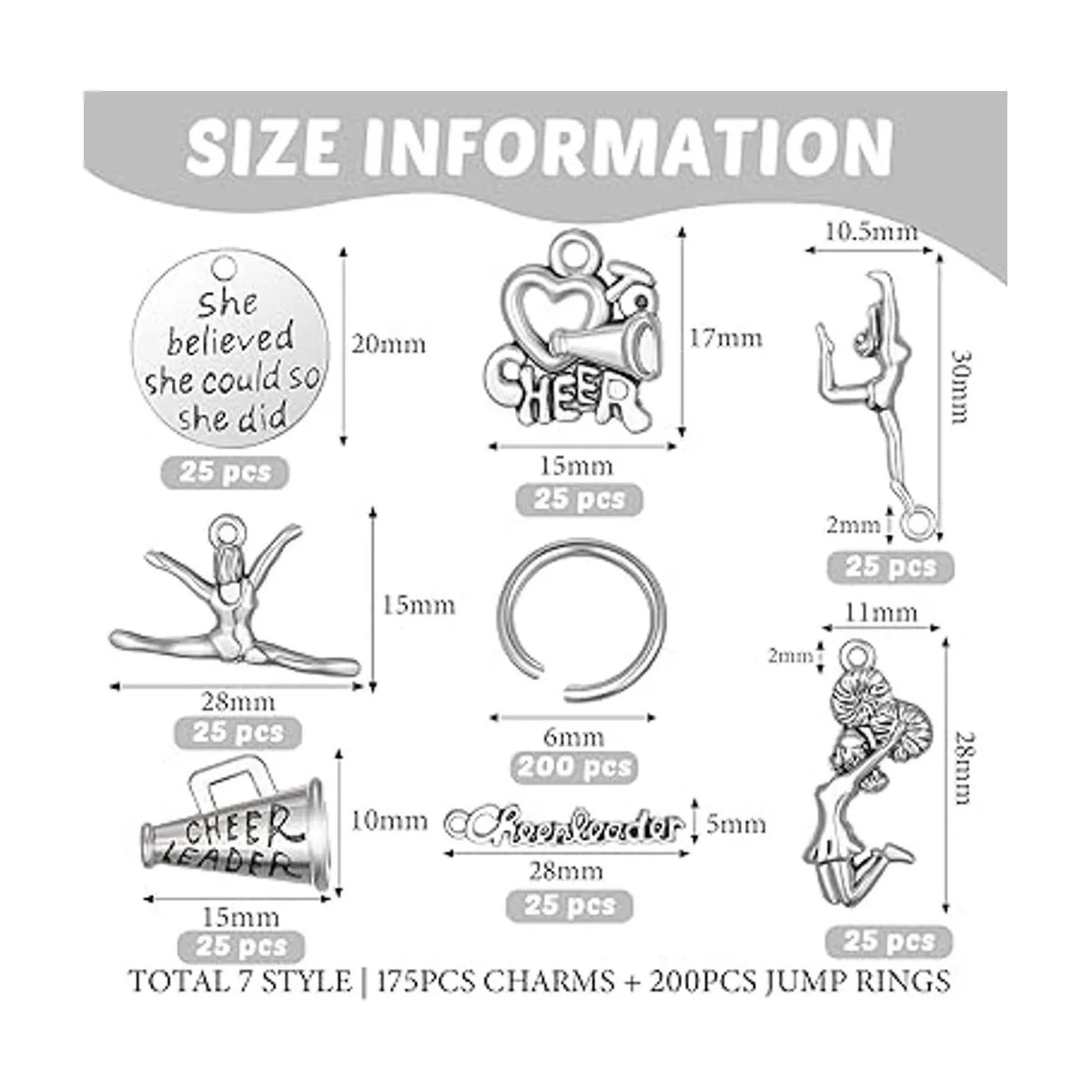 175 dijes de animadora colgantes de gimnasia, dije deportivo con 200 anillos de salto para manualidades, joyería, hallazgos, accesorios para hacer bricolaje collar, pulsera, Metal, No es una piedra preciosa