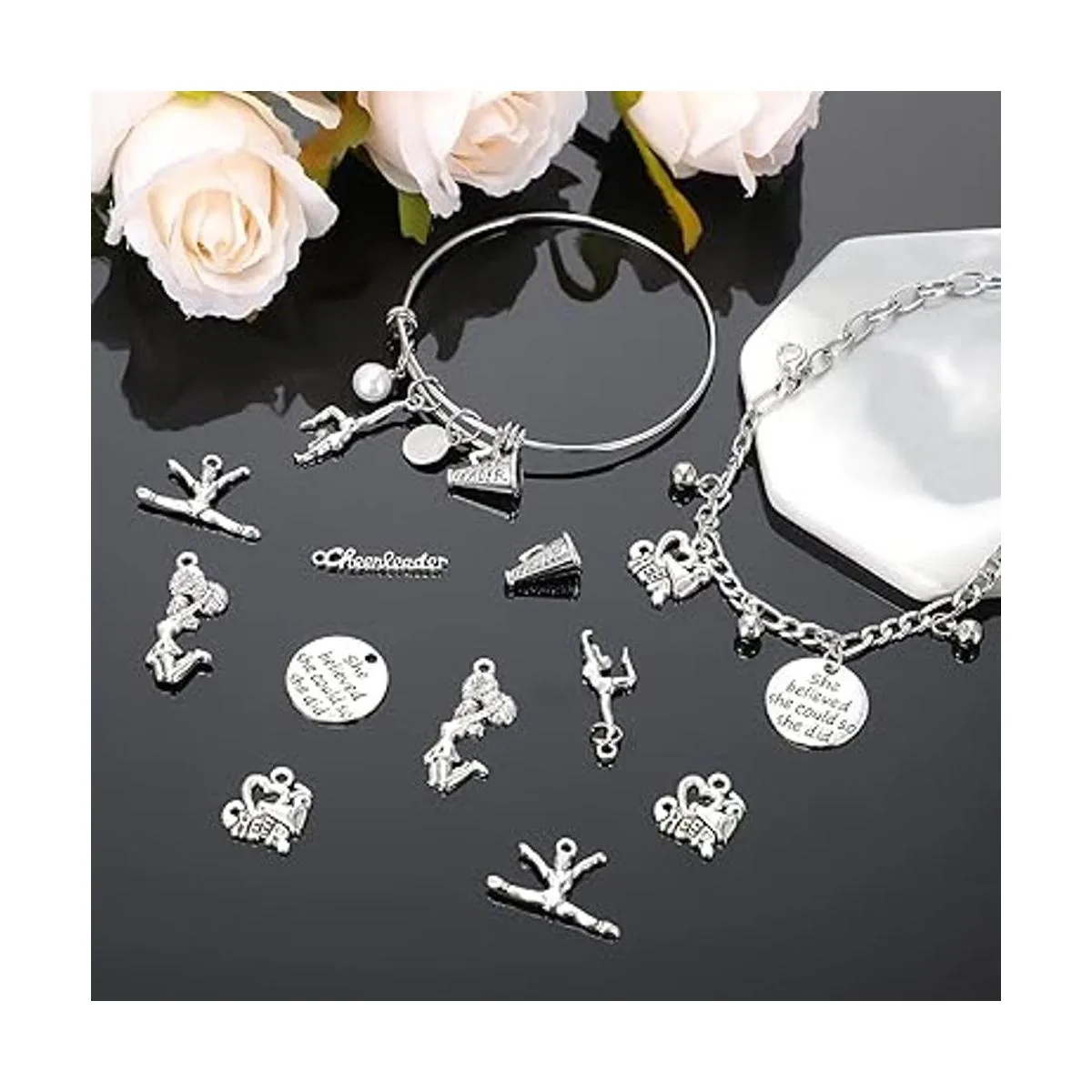Información sobre el tamaño: el dije de animadora para hacer joyas mide aproximadamente 15 a 1.181 in, el anillo de salto mide aproximadamente 0.25 pulgadas de diámetro; tienen tamaños compactos y peso ligero, también equipado con una caja de plástico, fácil de almacenar en casa o llevar con, sin ocupar demasiado espacio