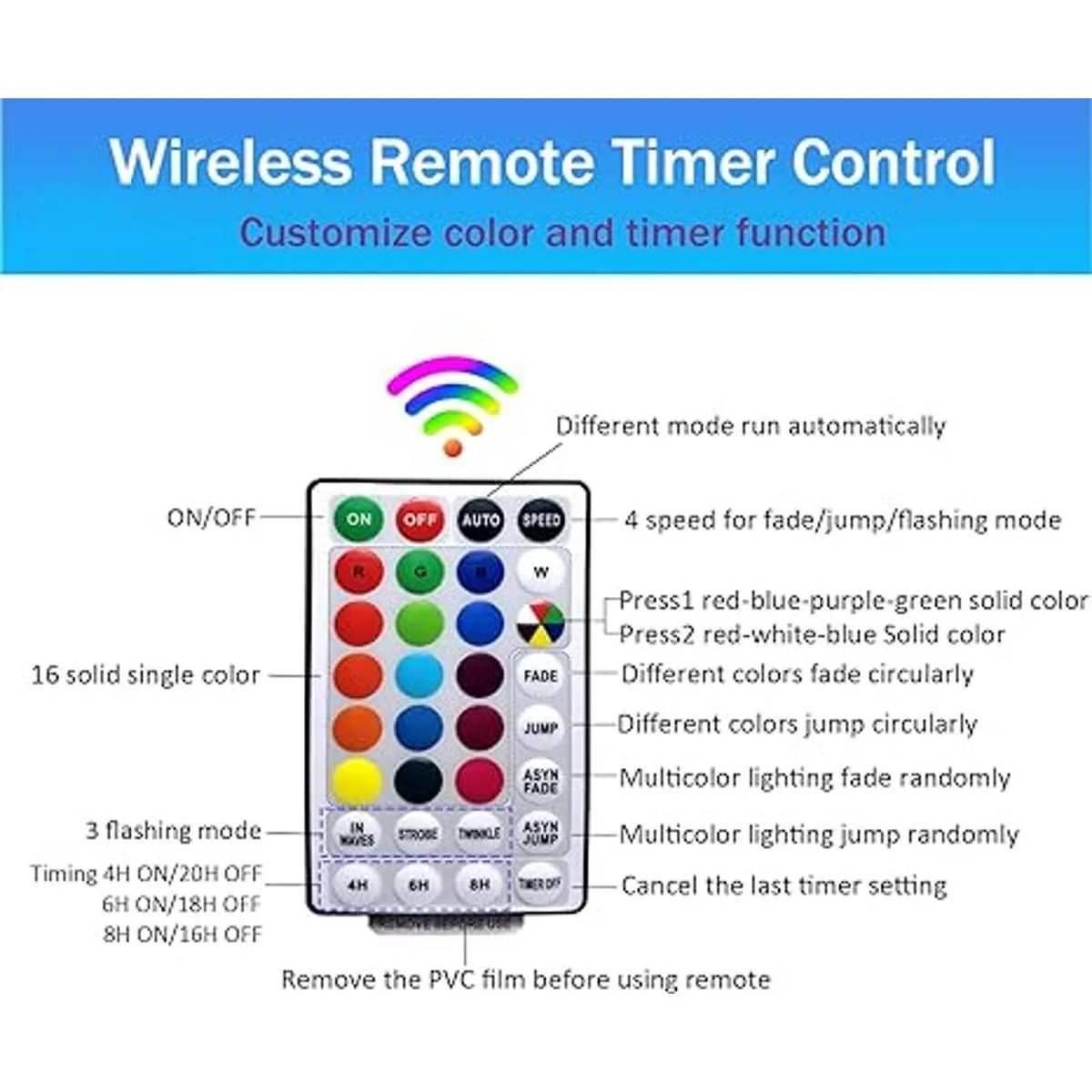 Control remoto de 7 luces y temporizador: utiliza el control remoto de 32 teclas para un funcionamiento fácil. 7 modos de iluminación hacen que la cadena de luces de tubo de PVC sea fabulosa: decoloración, salto, desvanecimiento ASYN, salto, parpadeo, estroboscópico, en ondas. Esta cadena de luces solares decorativas hace que tu casa y jardín sean encantadores y románticos. Función de temporizador: 4H/6H/8H. Controla libremente las luces solares de Navidad, el color, el modo y el temporizador están en tu control.