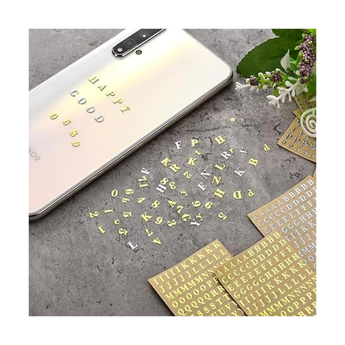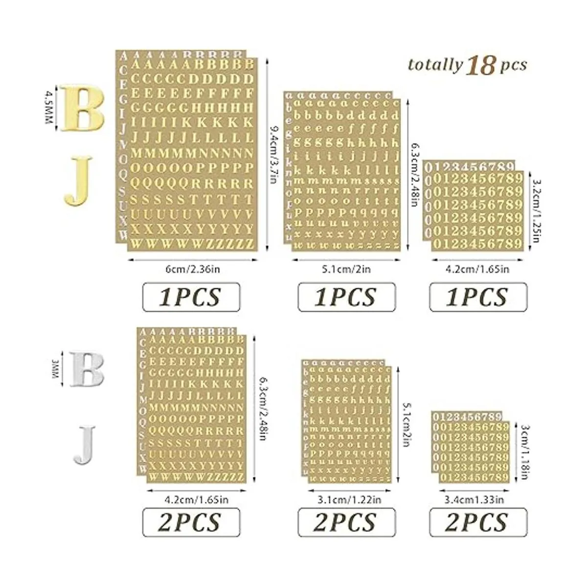 18 hojas de calcomanías de letras pequeñas, calcomanías de números del alfabeto, calcomanías de números autoadhesivas de monograma, letras de álbumes de recortes, calcomanías de letras para manualidades, tarjetas, decoración dorado, plateado