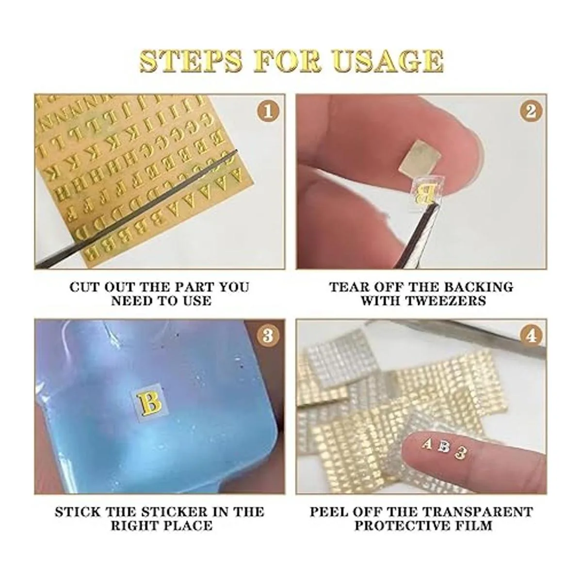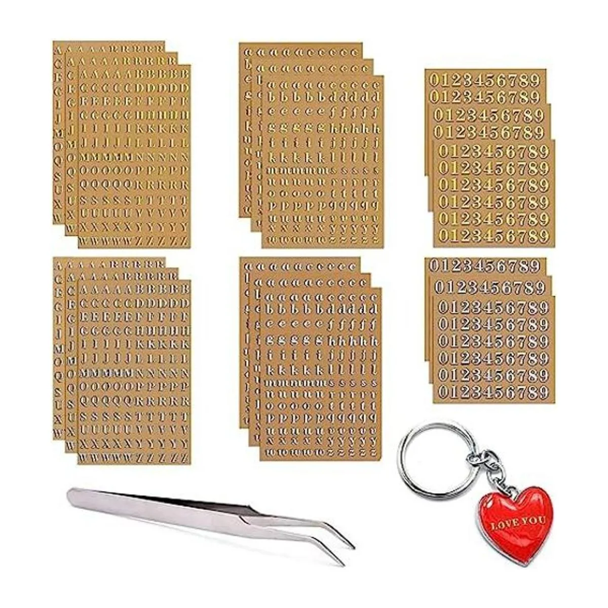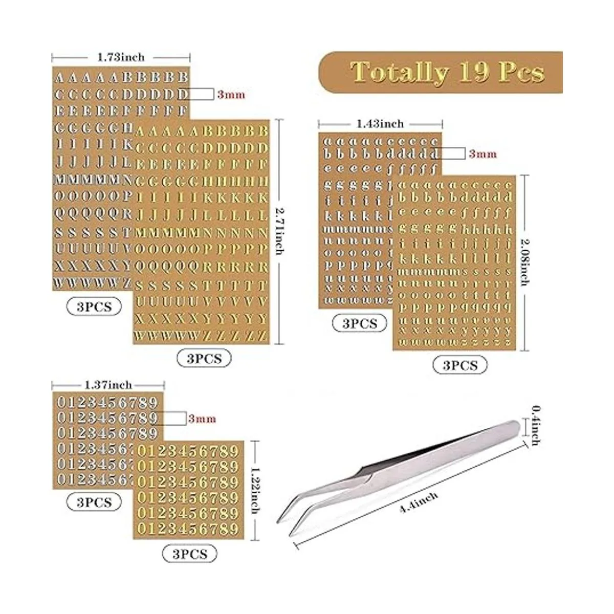18 hojas de calcomanías de letras pequeñas para resina, mini calcomanías de letras doradas y plateadas, calcomanías de números del alfabeto metálico para arte de uñas, manualidades de resina epoxi, calcomanías autoadhesivas con purpurina para álbumes de recortes con pinzas
