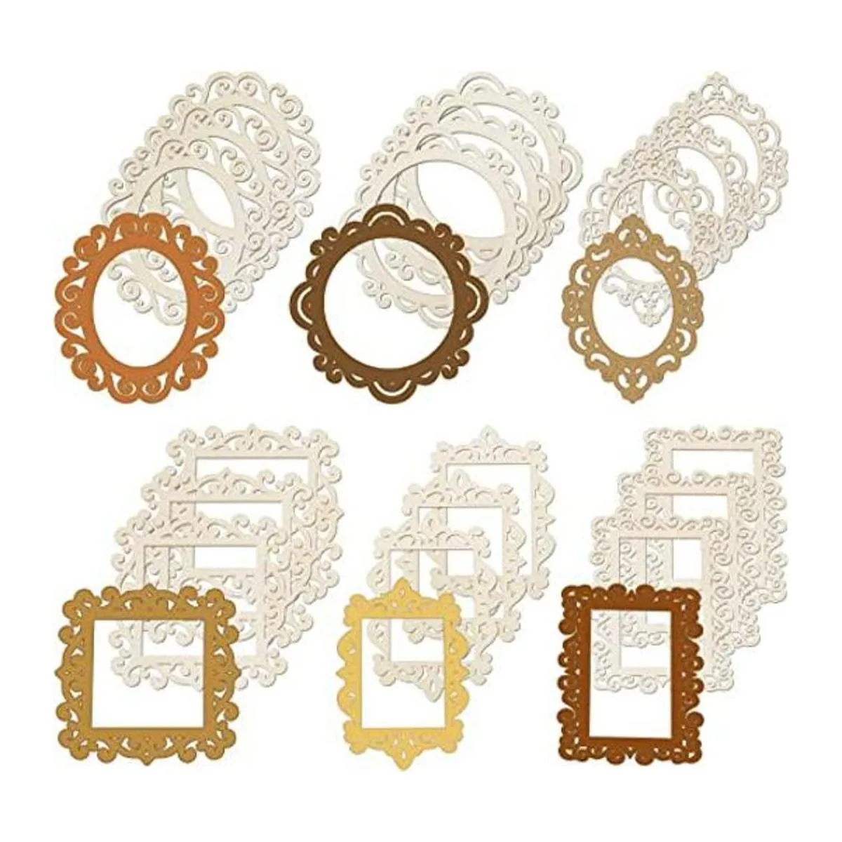 Suministros de bricolaje: estos marcos de madera para manualidades son una buena opción para los amantes del bricolaje, puedes pintar los marcos en varios colores que quieras, o puedes escribir palabras y dibujar patrones en el marco, para que puedas obtener los adornos en tu estilo personalizado, añadir pequeños adornos como flores, polvo de purpurina, calcomanías, cuentas, cintas o estrellas no incluidas también es una buena idea