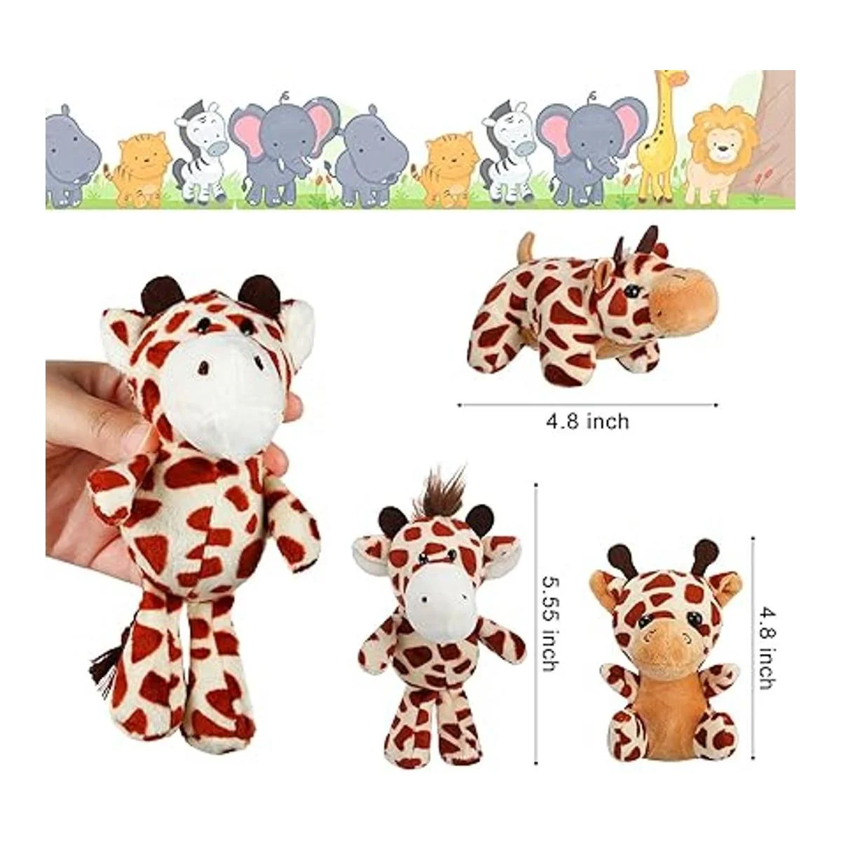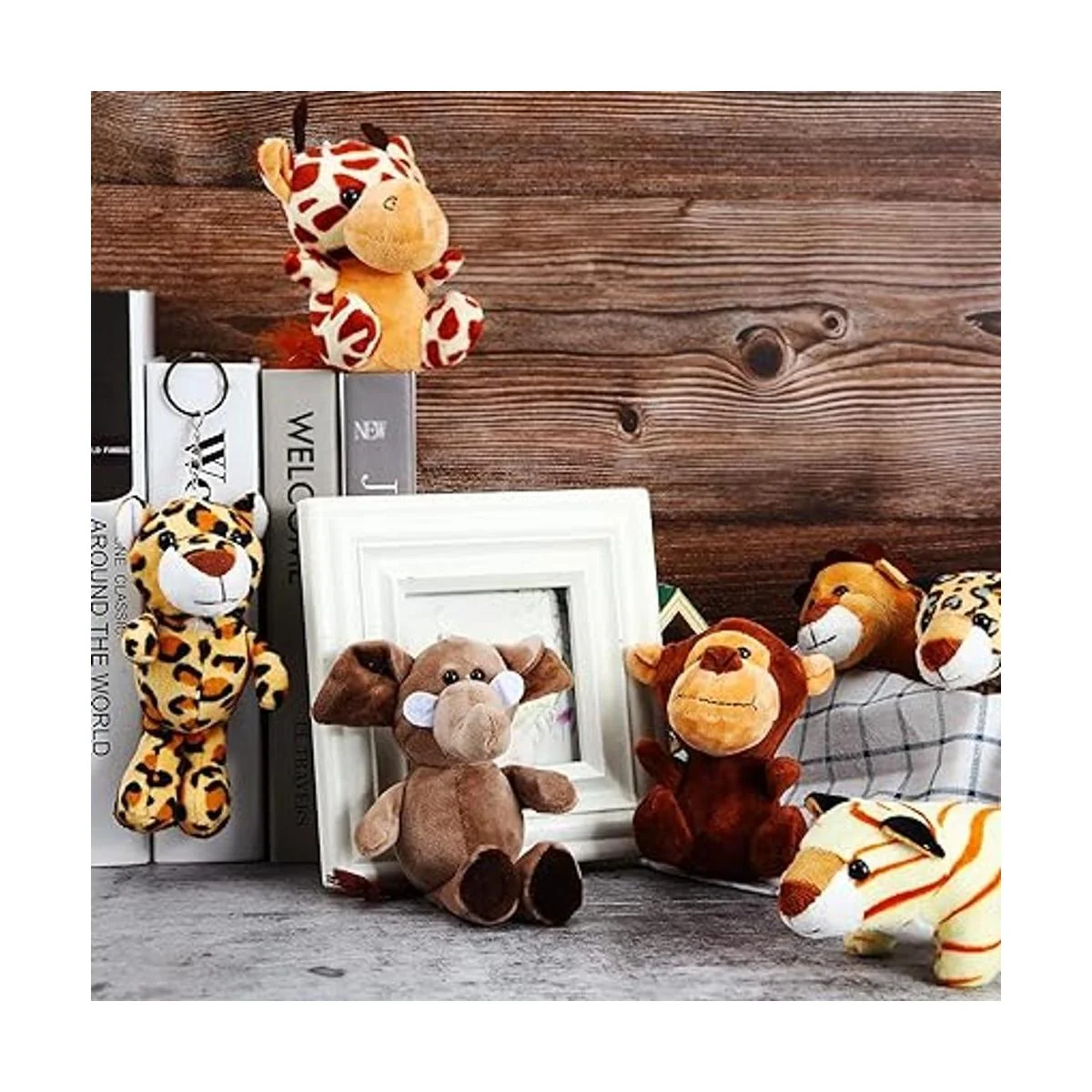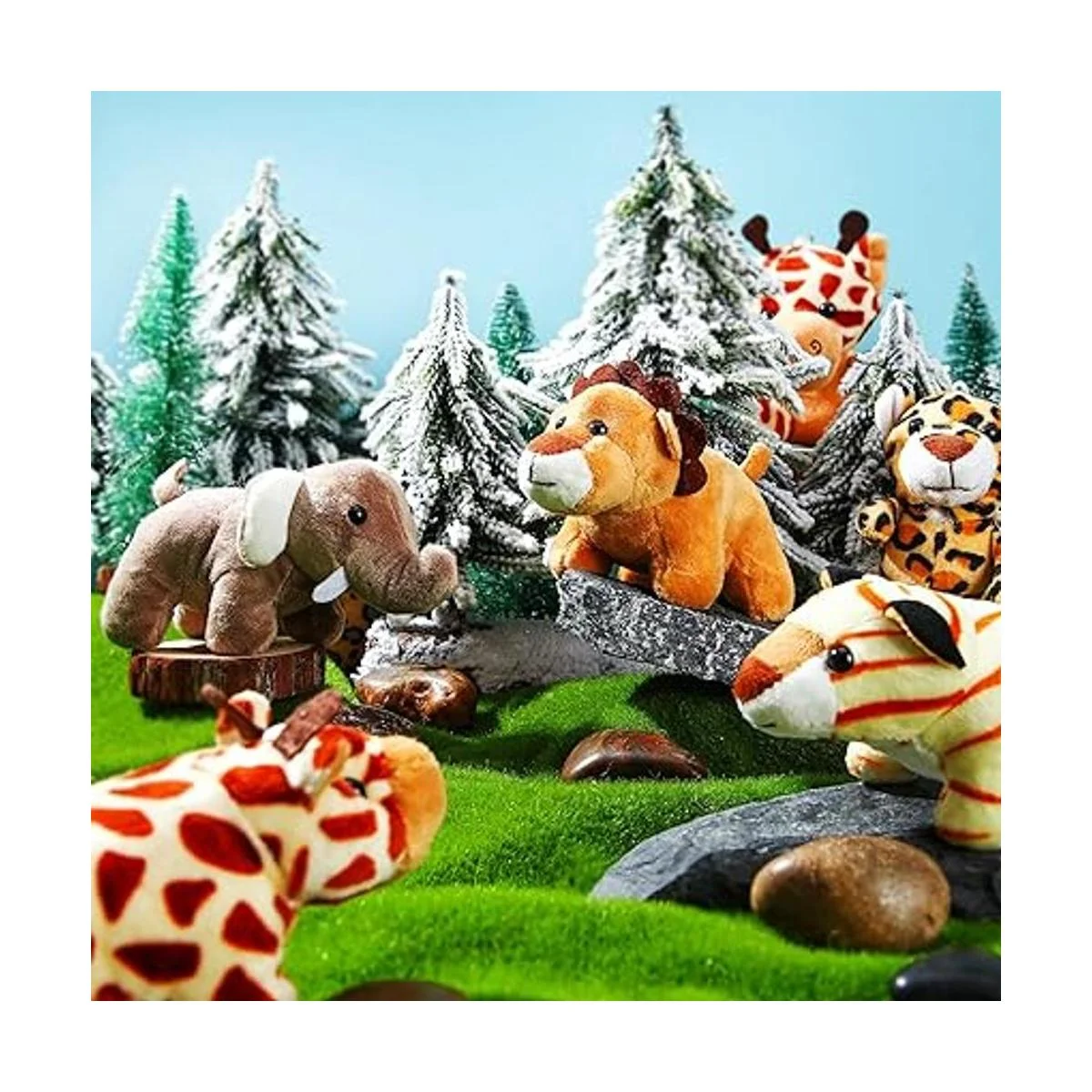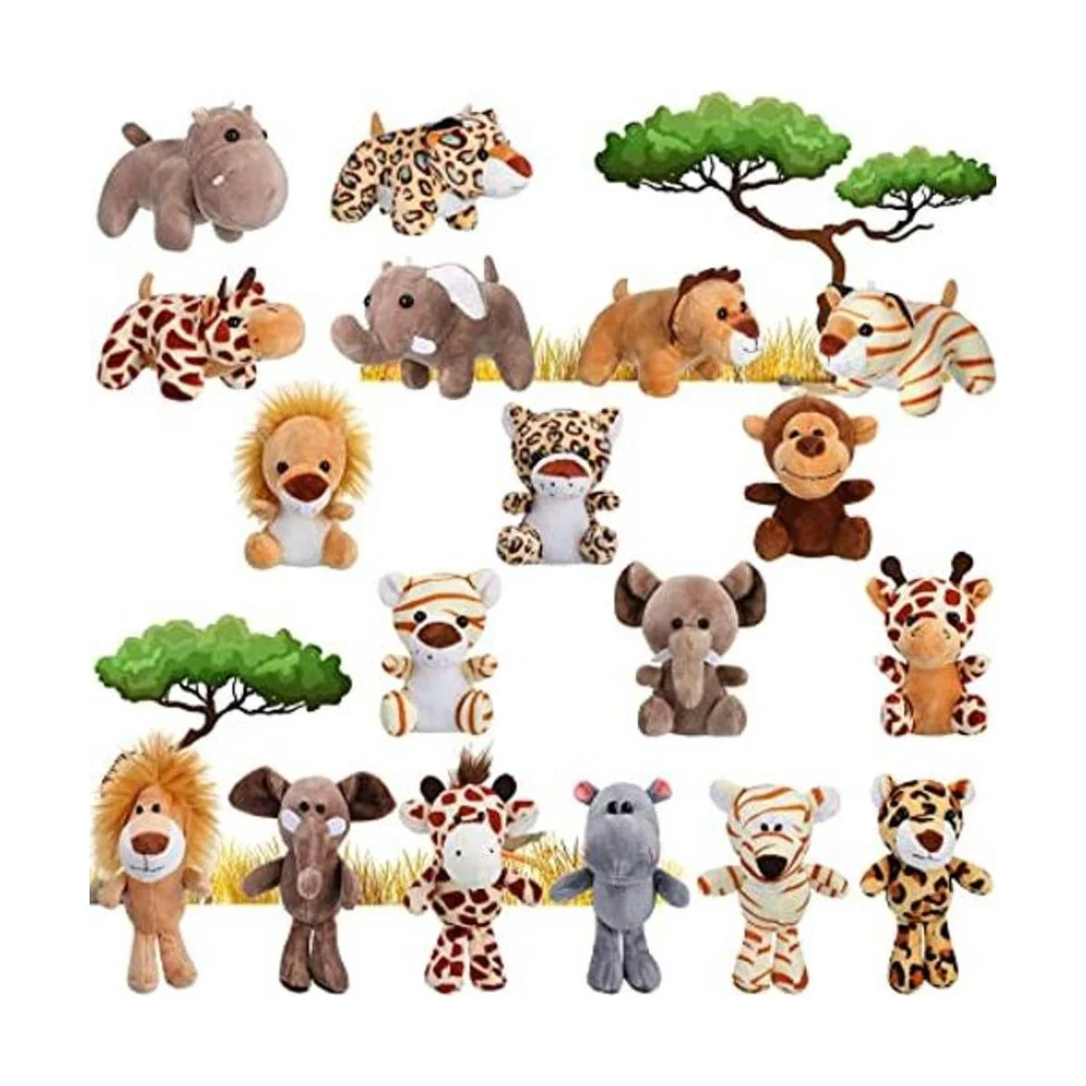 El paquete incluye: puedes obtener 18 juguetes de peluche de animales, incluyendo león, tigre, mono, elefante, jirafa, patrones de leopardo, cantidad suficiente para jugar a diario y compartir con tu familia y amigos