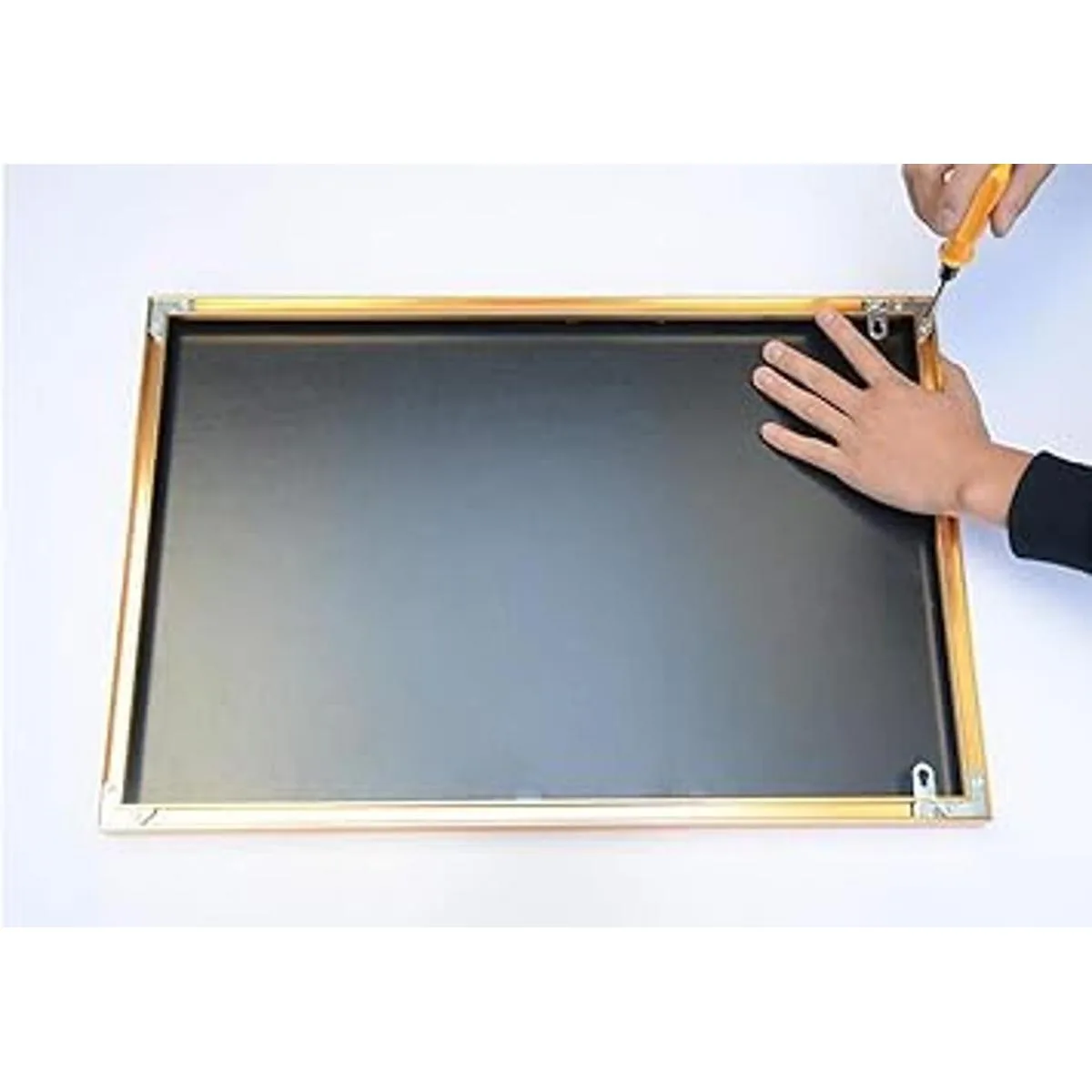Las esquinas y las placas traseras se utilizan en conjunto para unir esquinas de marcos de metal. Incluye todo lo necesario para montar la mayoría de marcos de metal y aluminio estándar.