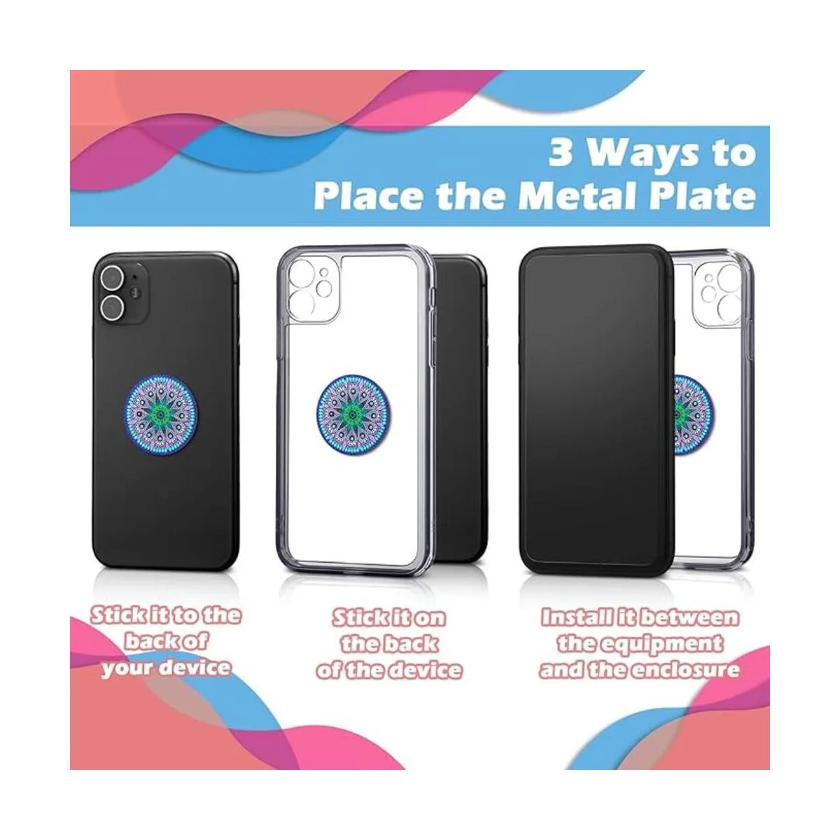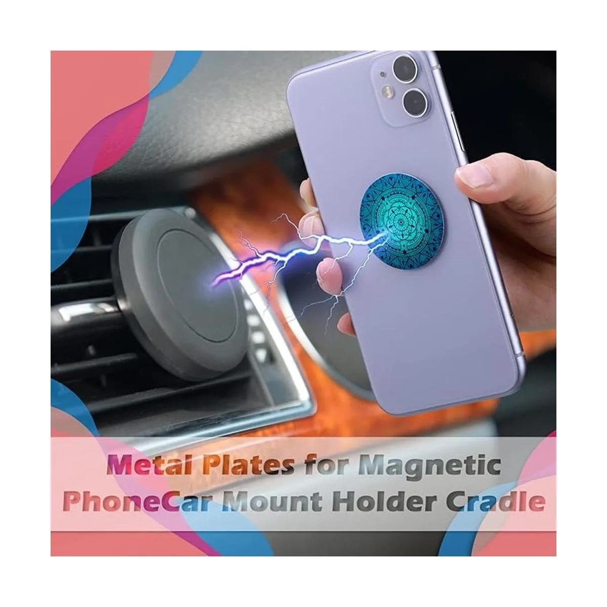 18 piezas de soporte magnético redondo para teléfono, placa de metal para imán de teléfono, soporte magnético universal para teléfono, placas de montaje magnéticas, pieza de metal adhesiva para soporte magnético para teléfono, estilo mandala