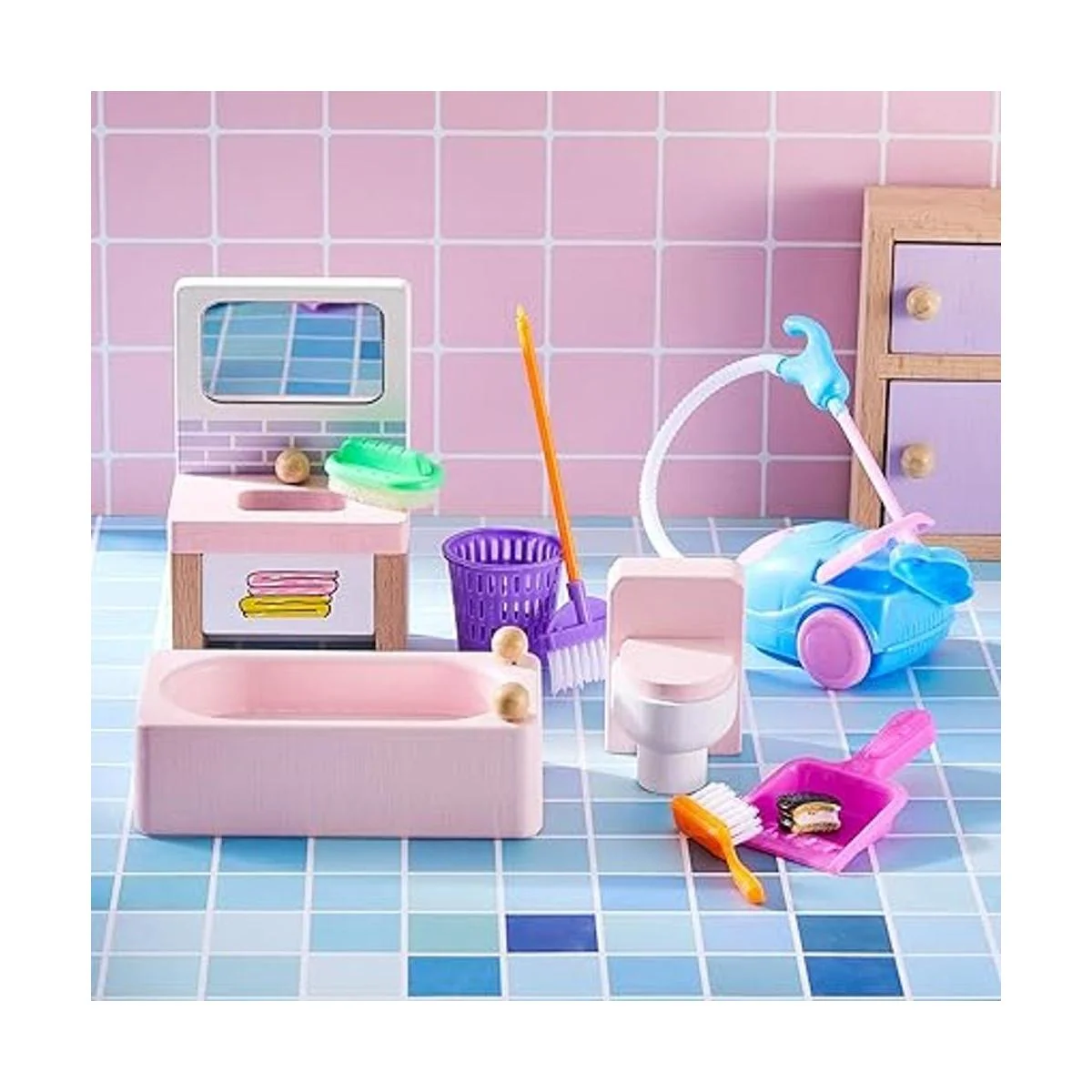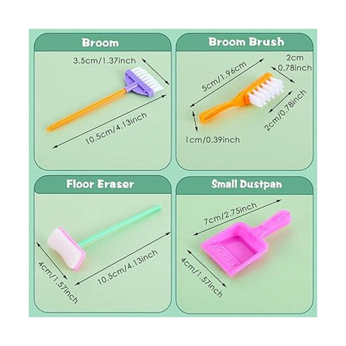 Accesorios para casa de muñecas: este adorable kit de limpieza de casa de muñecas es muy adecuado para casas de muñecas, úsalo para decorar la casa, se ve lindo incluso si se coloca en la esquina del dormitorio o sala de juegos, y también se puede aplicar para accesorios de fotografía de escenas en miniatura, juegos de rol, etc