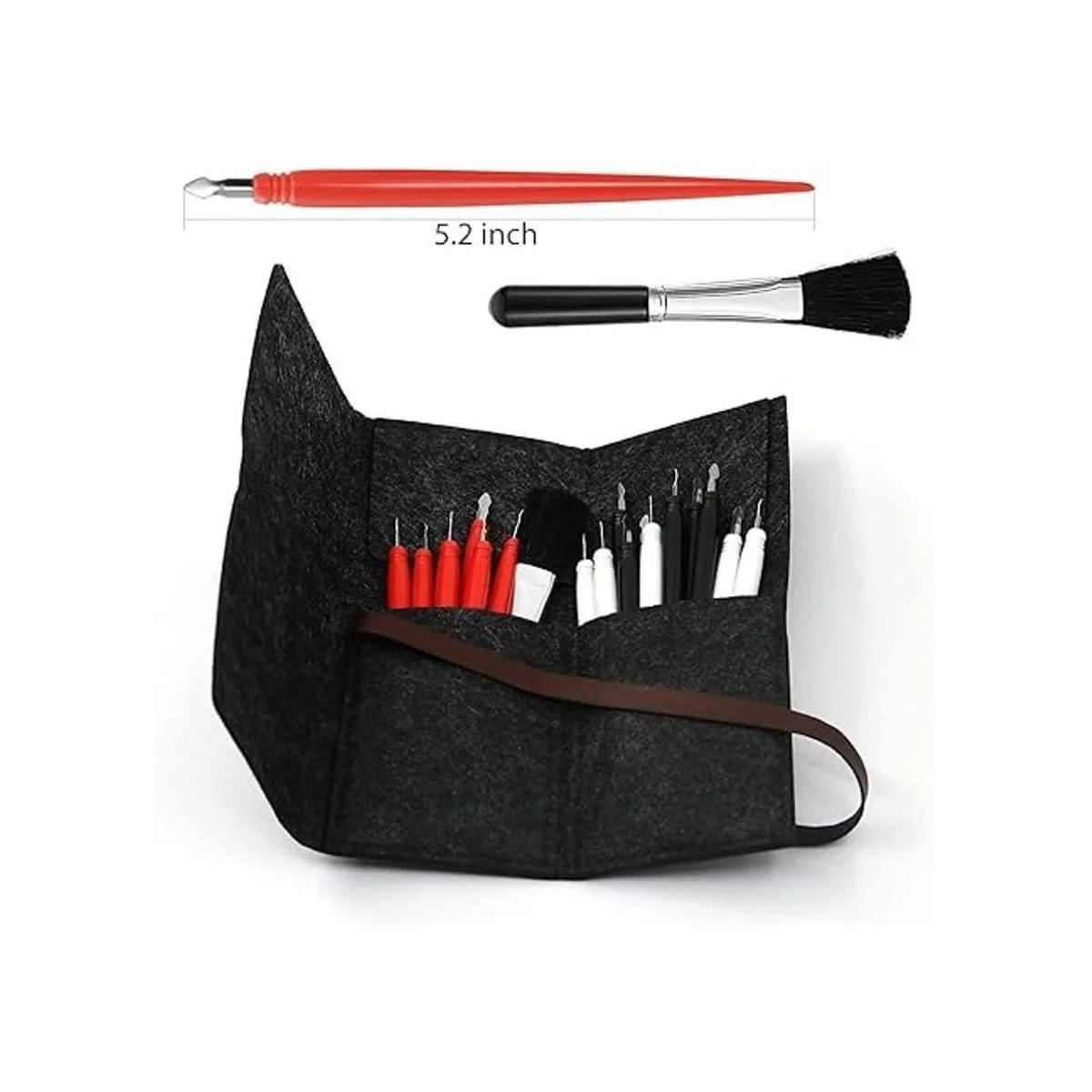 Juego de herramientas de arte para pintura de arañazos: el paquete incluye: 1 estuche para bolígrafos, 18 bolígrafos de metal de doble punta para arañar, 1 cepillo de limpieza, suficiente para usar con amigos al mismo tiempo