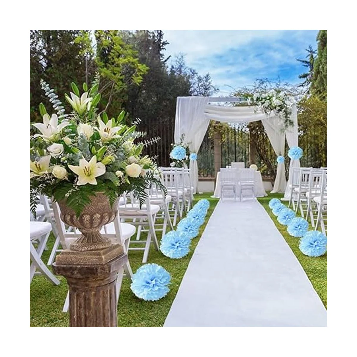 18 pompones de papel para colgar pañuelos, bolas de flores, boda, fiesta, decoración al aire libre, papel de seda de alta calidad, pompones, kit de manualidades azul y blanco, 8 pulgadas, 10 pulgadas, 12 pulgadas