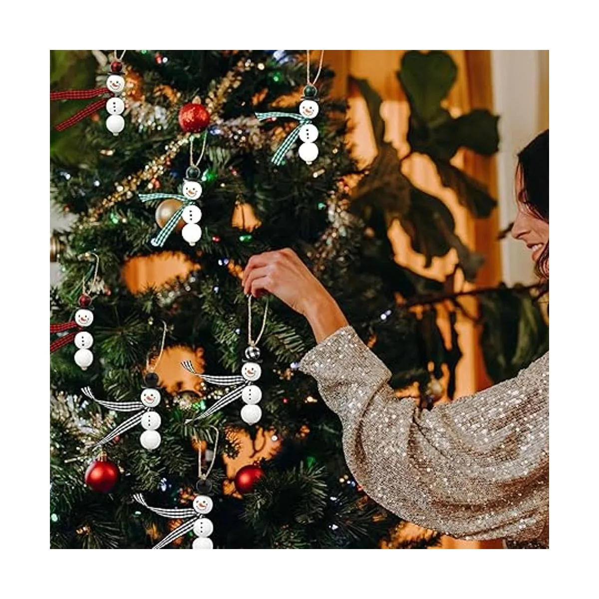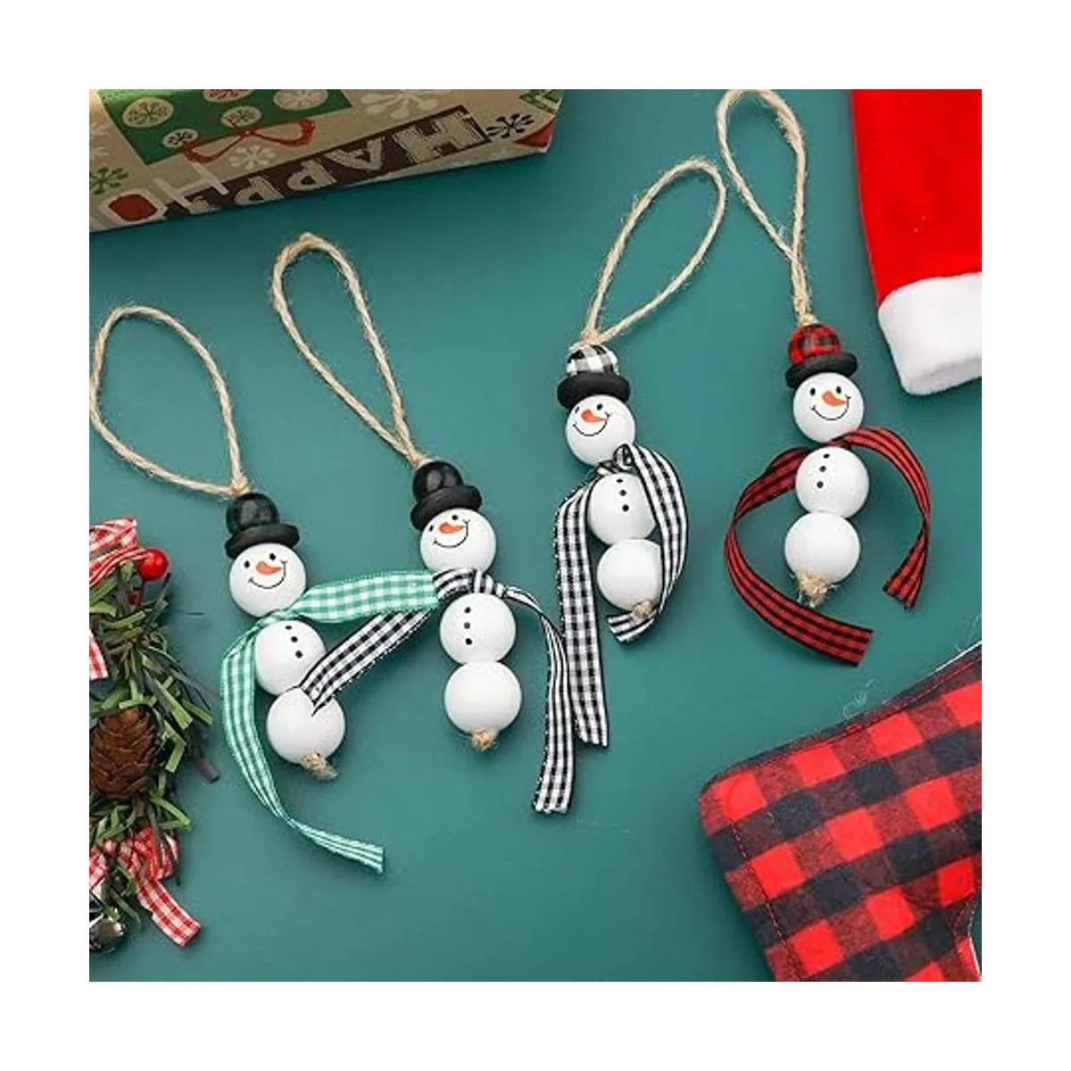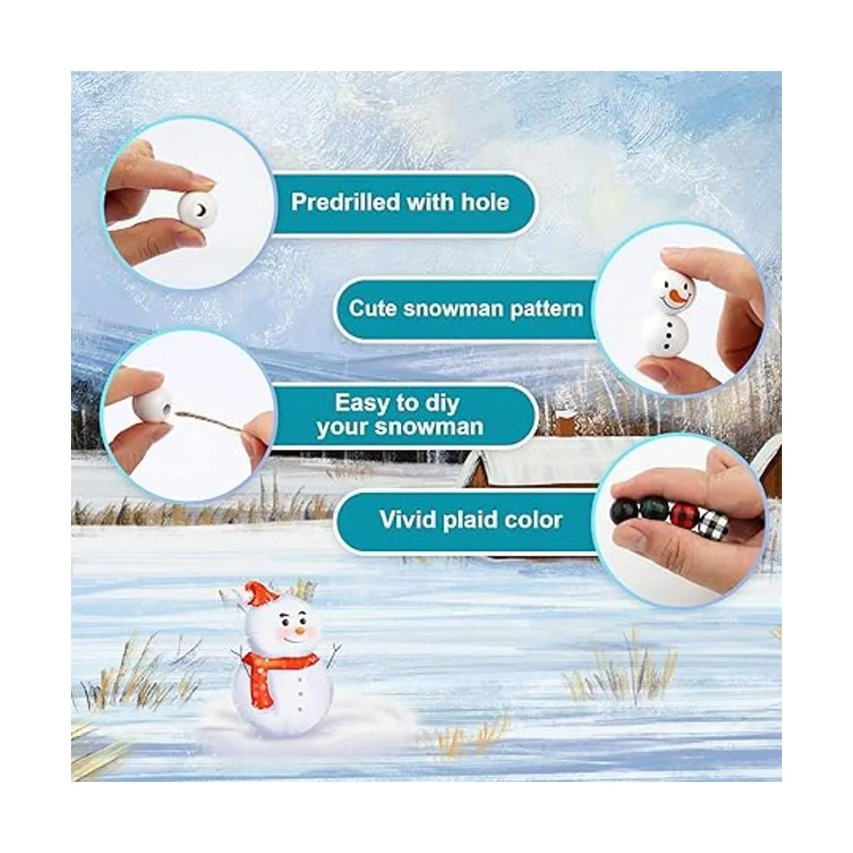 180 cuentas de madera de Navidad, muñeco de nieve de Navidad, cuentas de madera de búfalo de invierno, decoraciones de Navidad con estampado de búfalo, bufanda de cordel para manualidades, guirnalda de decoración de fiesta