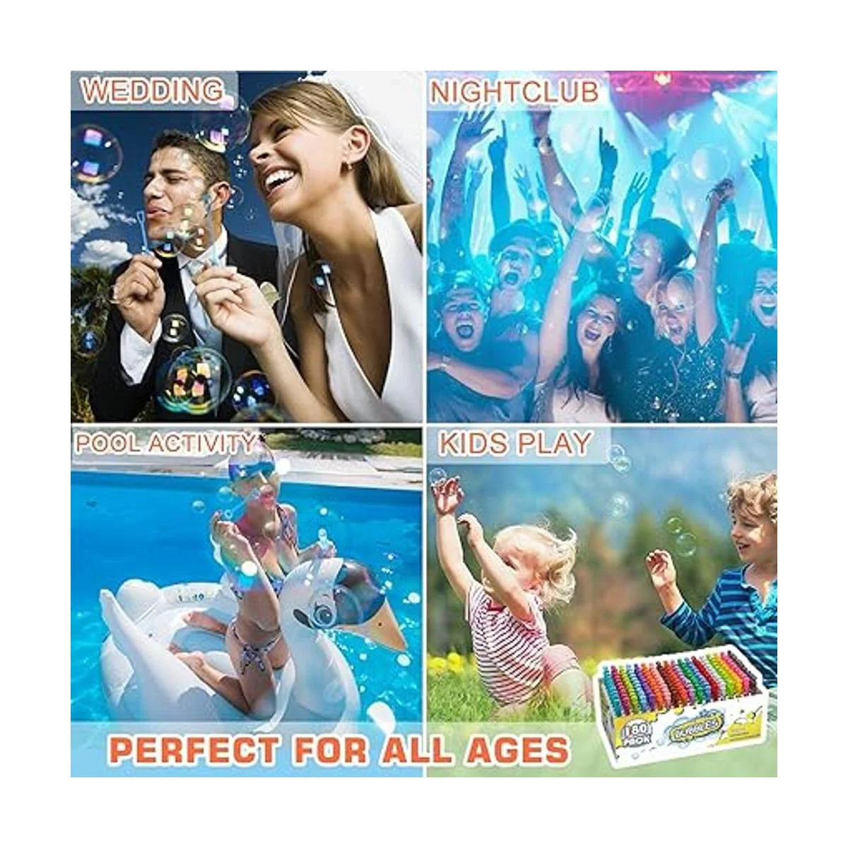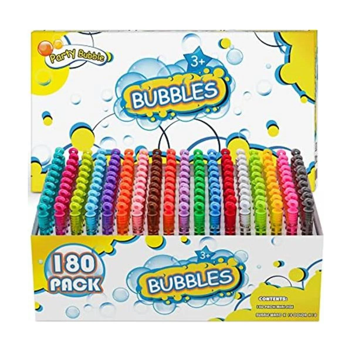 180 piezas de porción súper grande pueden satisfacer a los niños soplando burbujas durante horas de juego ininterrumpido con sus amigos, también como opción popular para viajes, picnics, suministros de fiesta arcoíris y paseo de Halloween.