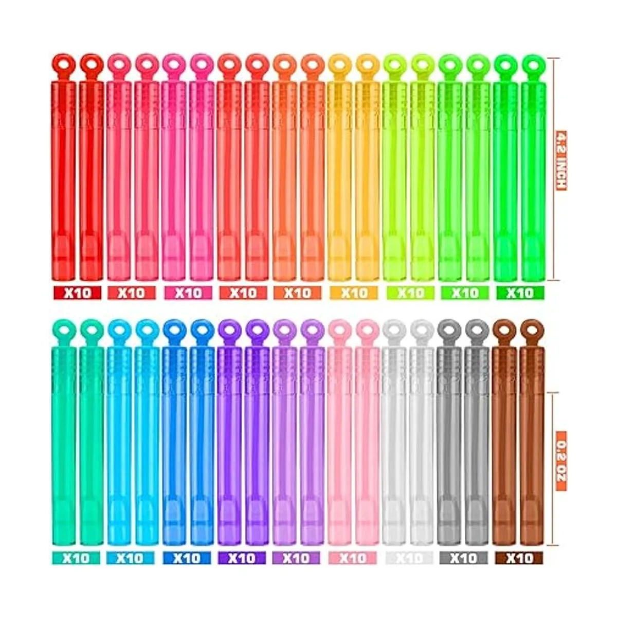 Paquete de 180 unidades: juego de burbujas de 18 colores surtidos perfectamente almacenado en una fuerte caja de regalo. Suficientes colores para que todos puedan elegir su color favorito 4 pulgadas por uno, cabe fácilmente en el bolsillo y no gotea.