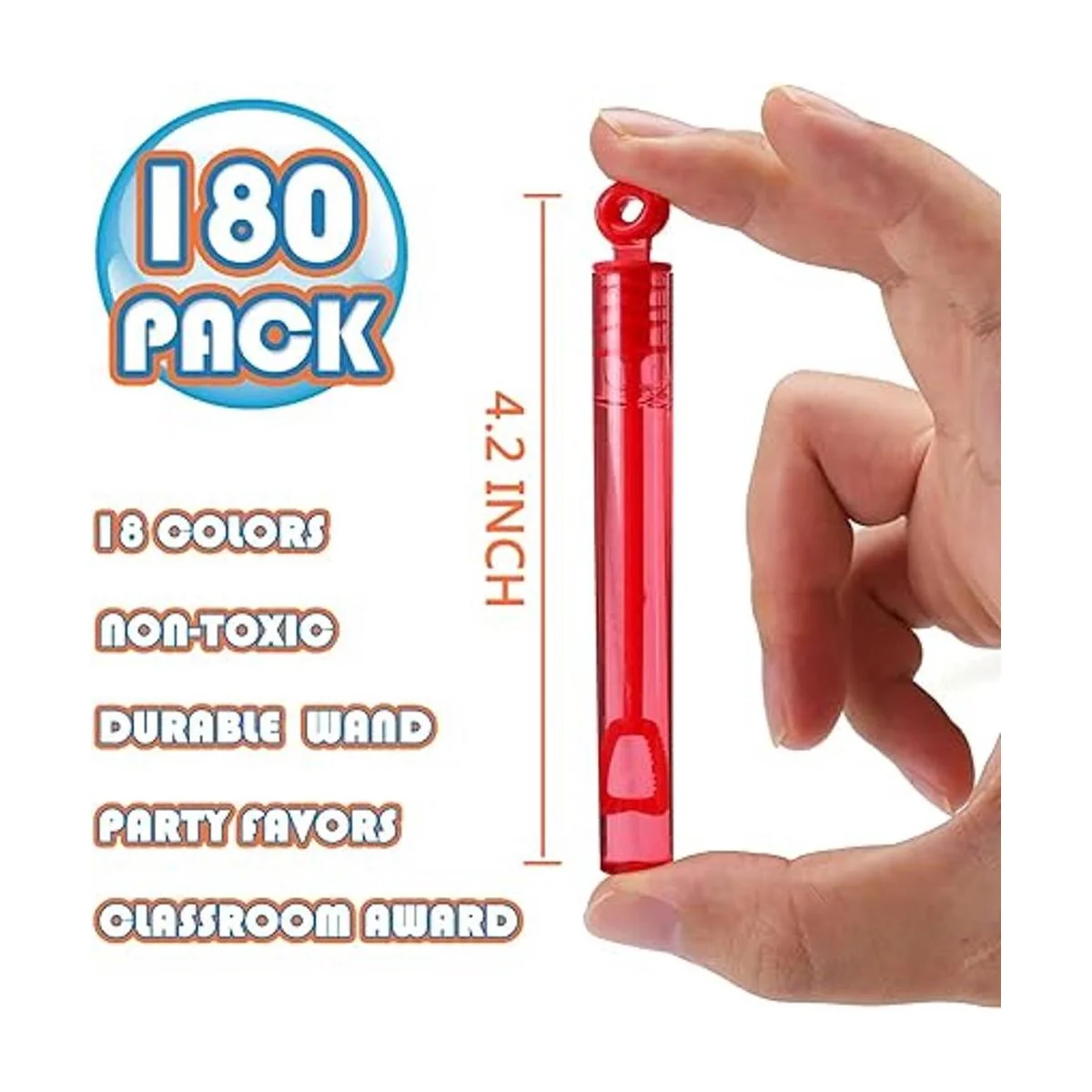 180 varitas de burbujas, mini juguete de burbujas de neón de 18 colores a granel con caja para Halloween, rellenos de cesta de Pascua, surtido de recuerdos de fiesta de burbujas para uso en actividades al aire libre en interiores, recompensa de aula para niños y niños