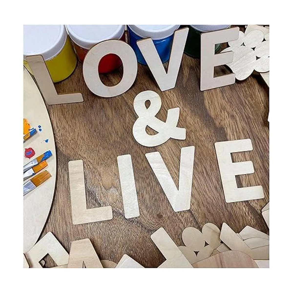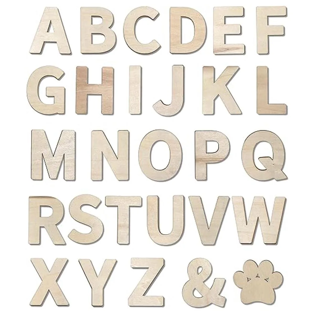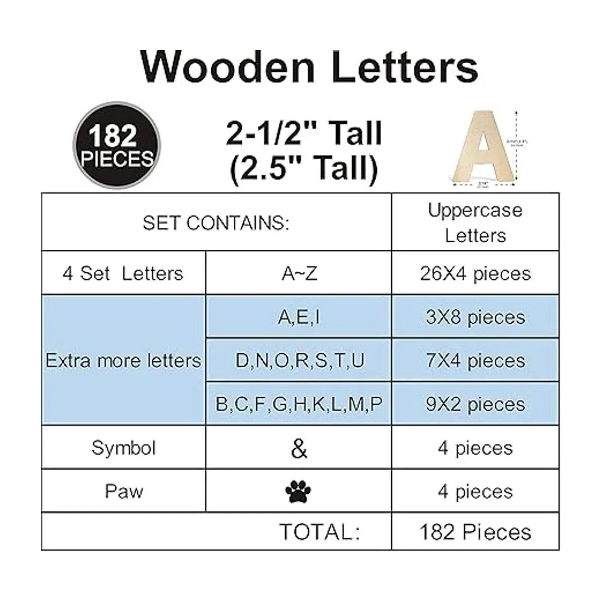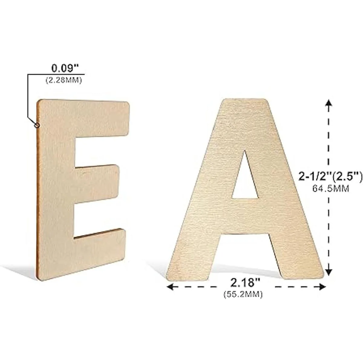 182 letras de madera de 212 pulgadas 2.5 pulgadas, letras de madera artesanales, alfabetos sin terminar con extras decoración de pared