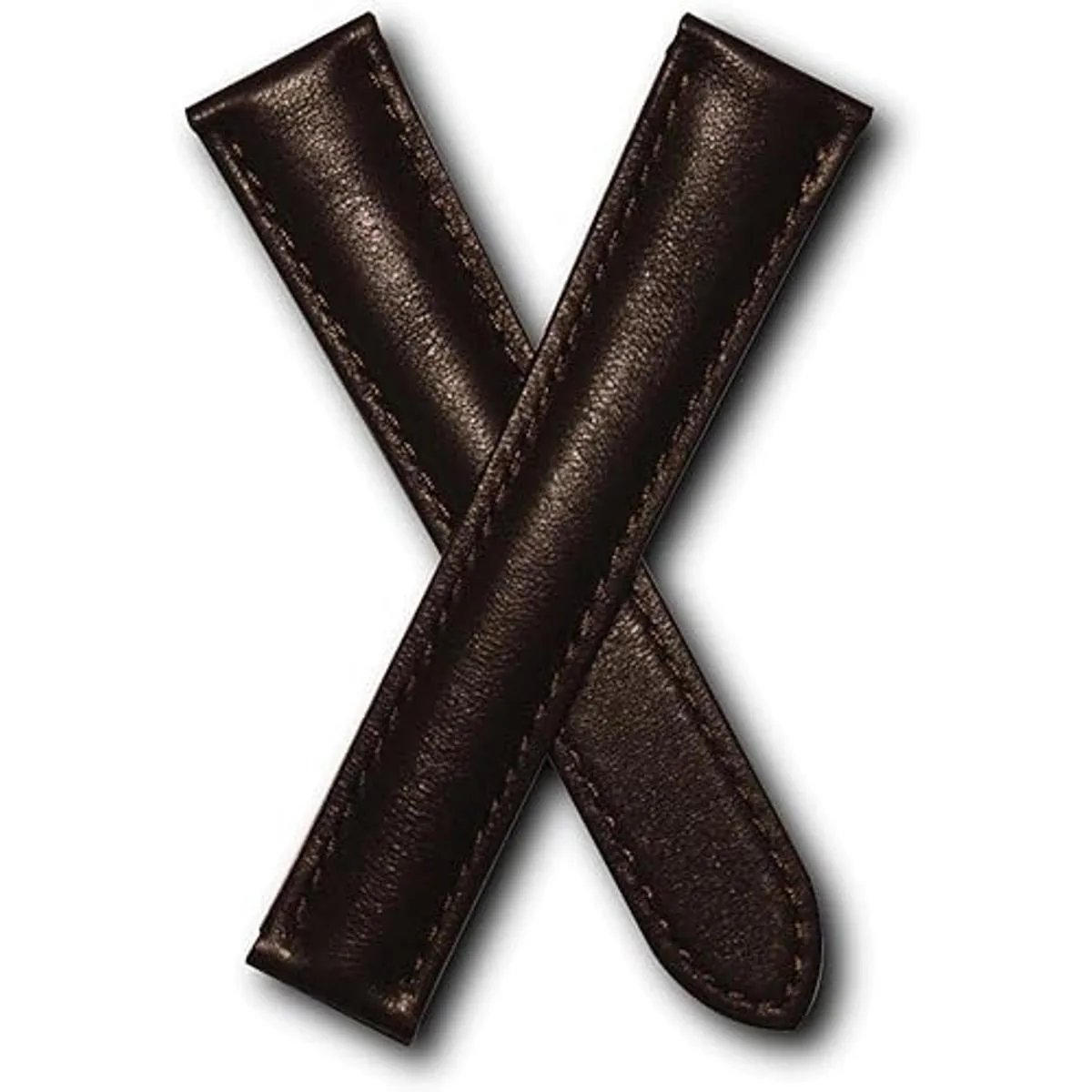 19 mm de ajuste suave del café piel auténtica Despliegue Watchband con costuras de color café para Cartier relojes