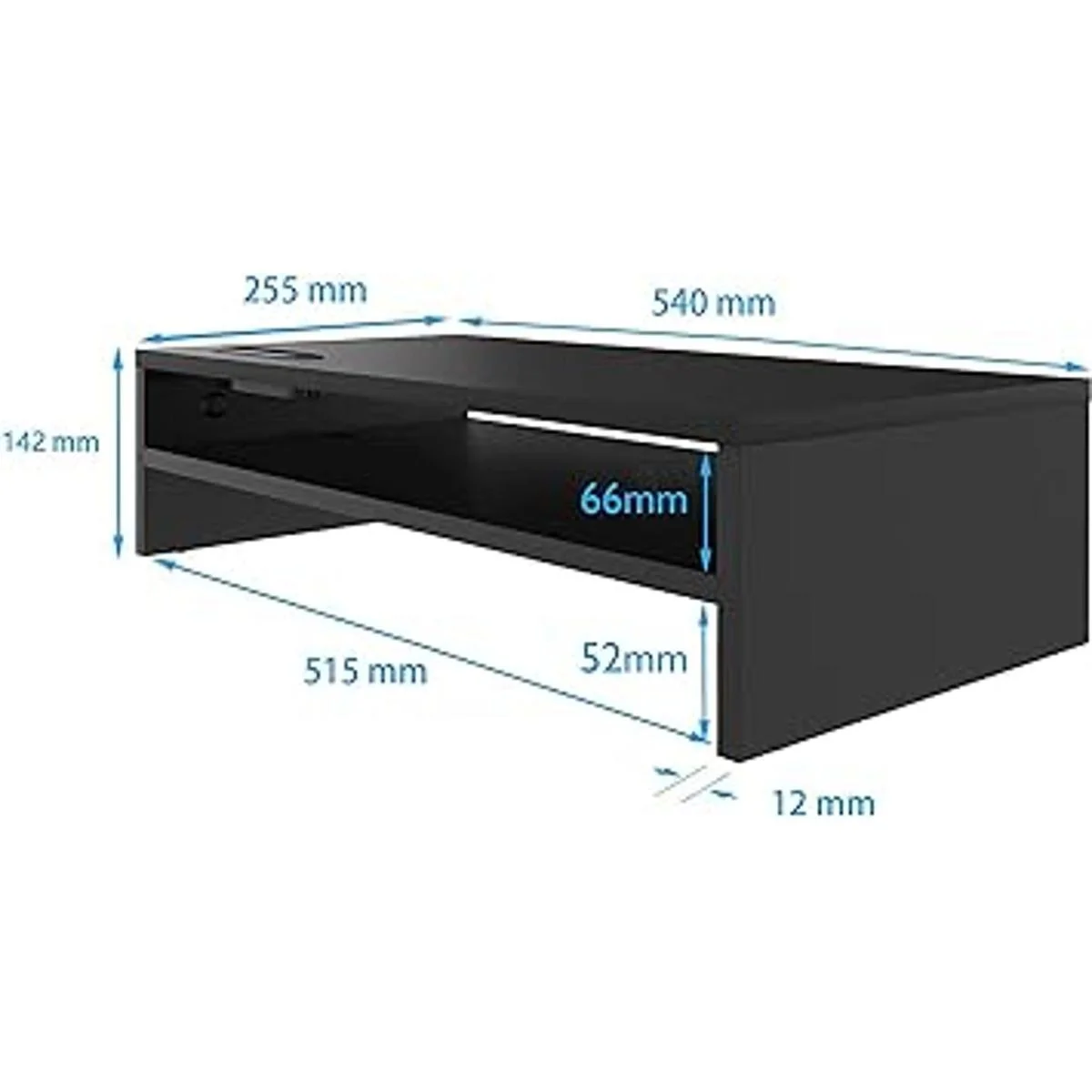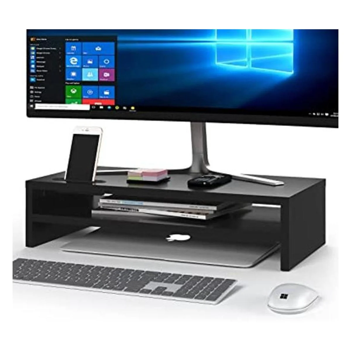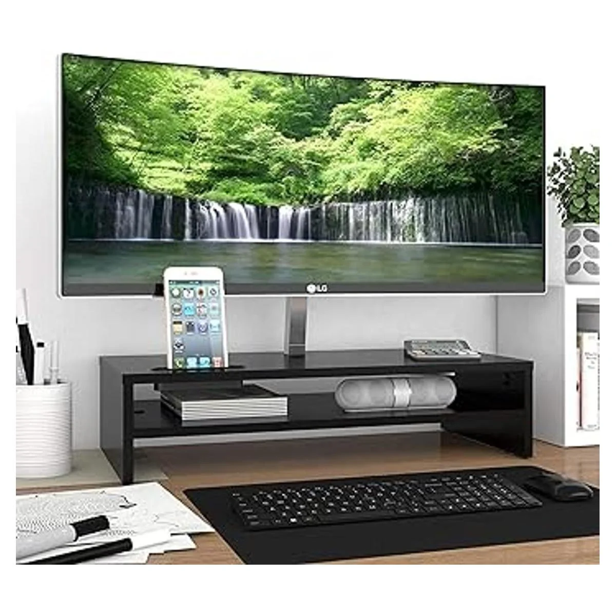 FIT FULLSIZE KEYBOARD This 21.3 inch Extra Long monitor wood monitor riser stand is made of premium ecofriendly MDF wood 0.47 inch thickness without any air pollution. Unique and smart design with 2 tiers, Max Holding Capacity 66.14lbs/30kg. We using the professional craftsman exquisitely polished painting finish for a longlasting life. Our monitor stand riser is perfect for using as a desktop stand, laptop stand, PS4 monitor stand or a computer stand.