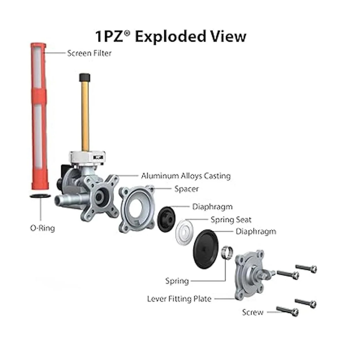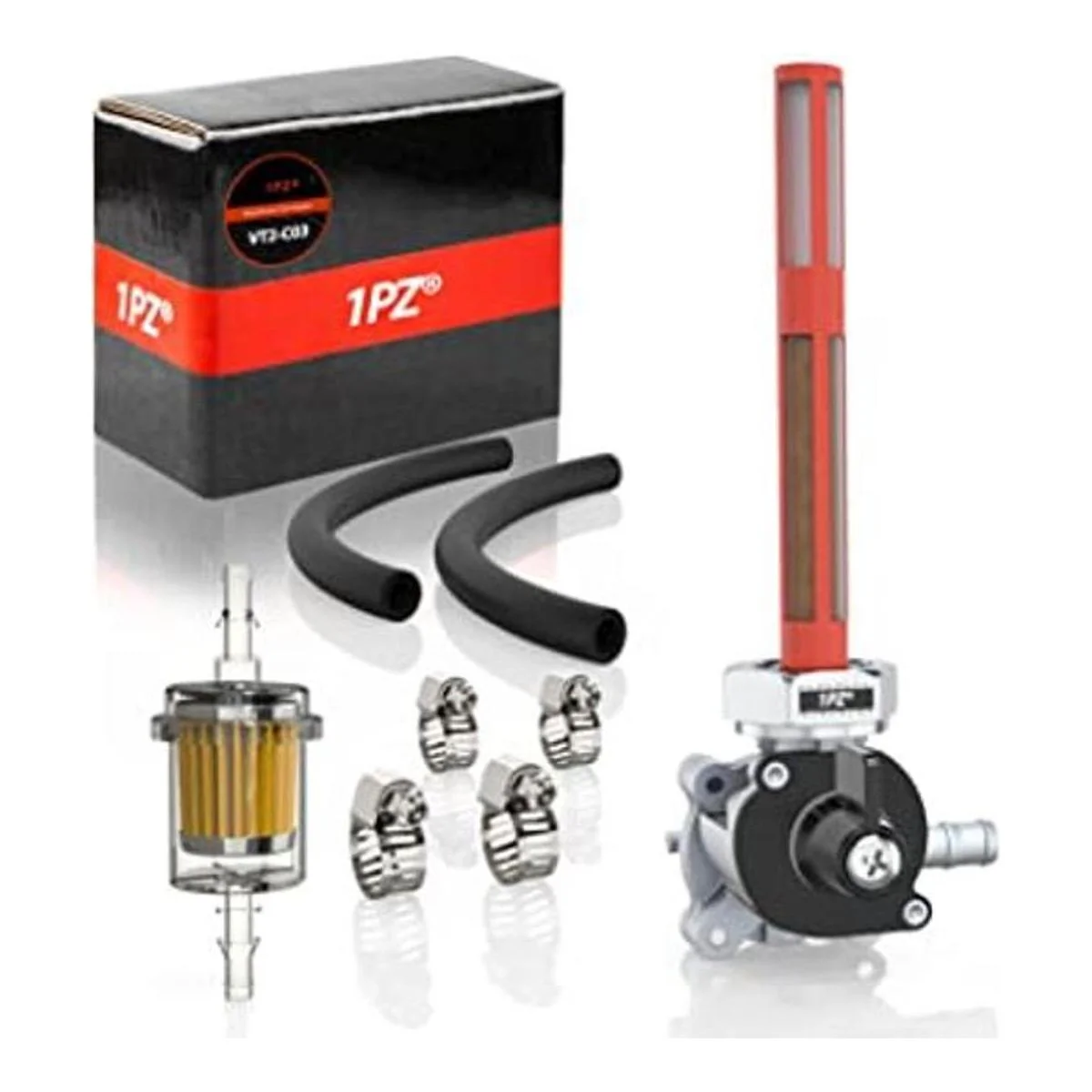 El paquete incluye 1 grifo de gasolina, 1 filtro de combustible, 2 líneas de combustible en una caja de la marca 1PZ