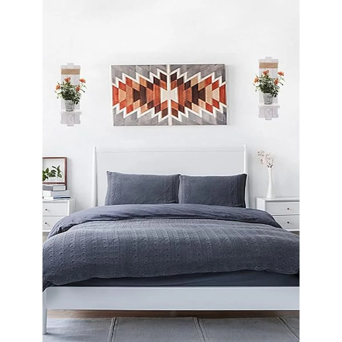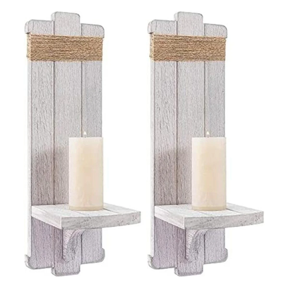 2 apliques de vela para colgar en la pared, estilo nórdico, hechos a mano, de madera, para montaje en pared, estilo nórdico, apliques de pared colgantes rústicos para dormitorio, sala de estar, cocina, baño blanco grisáceo