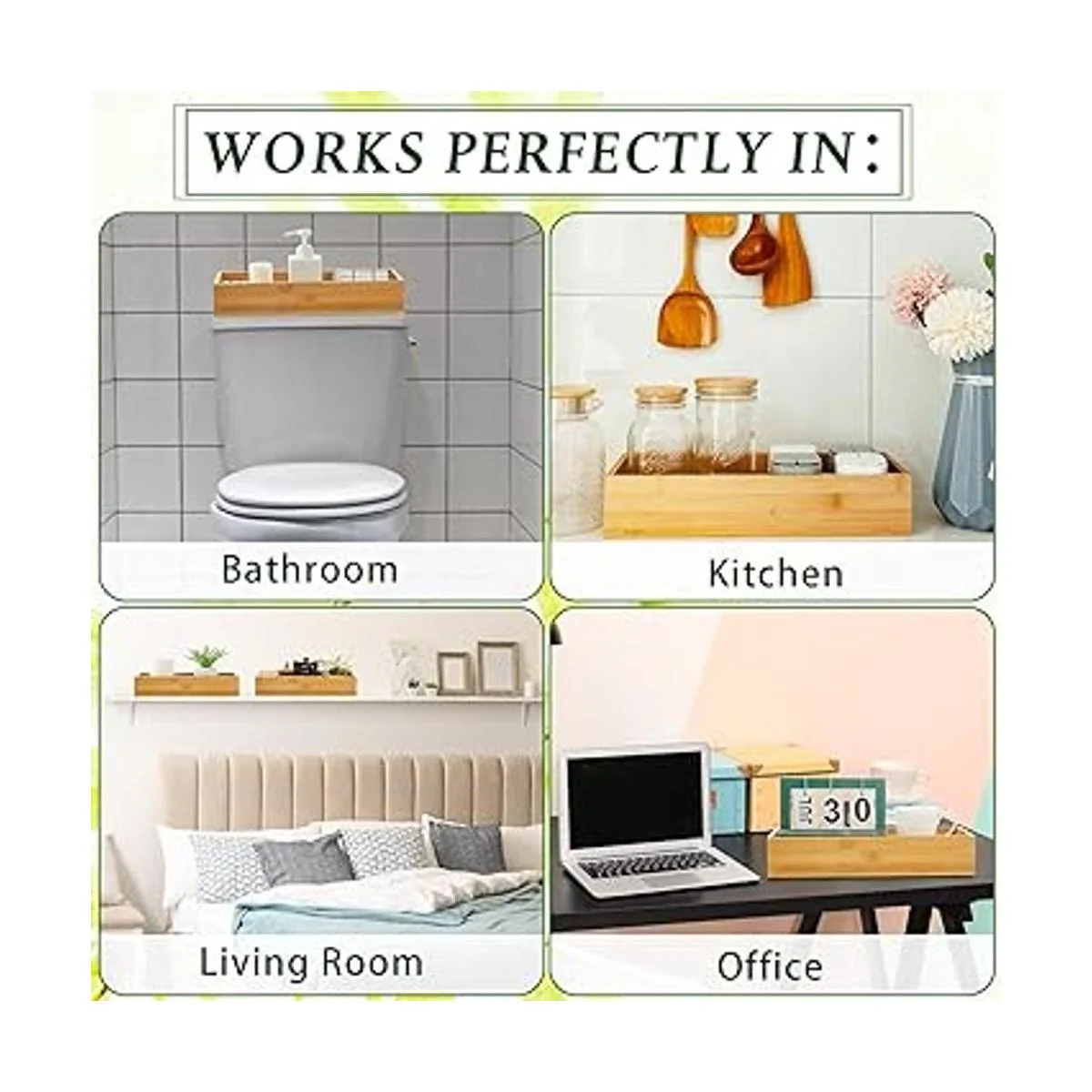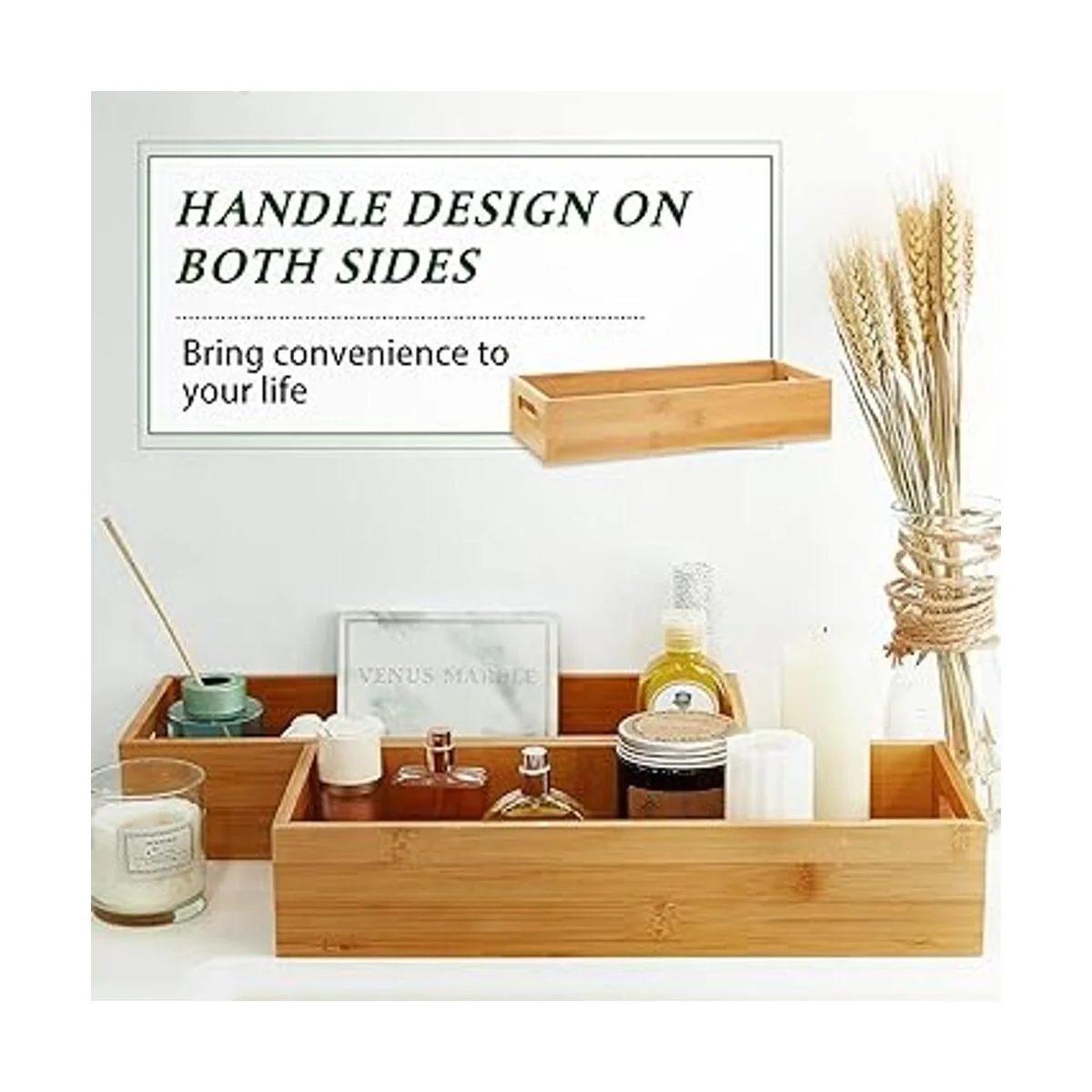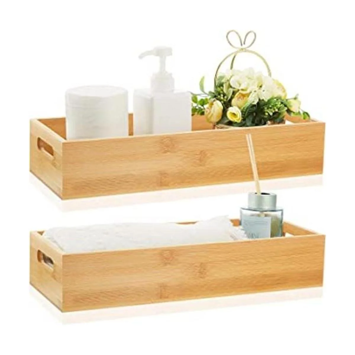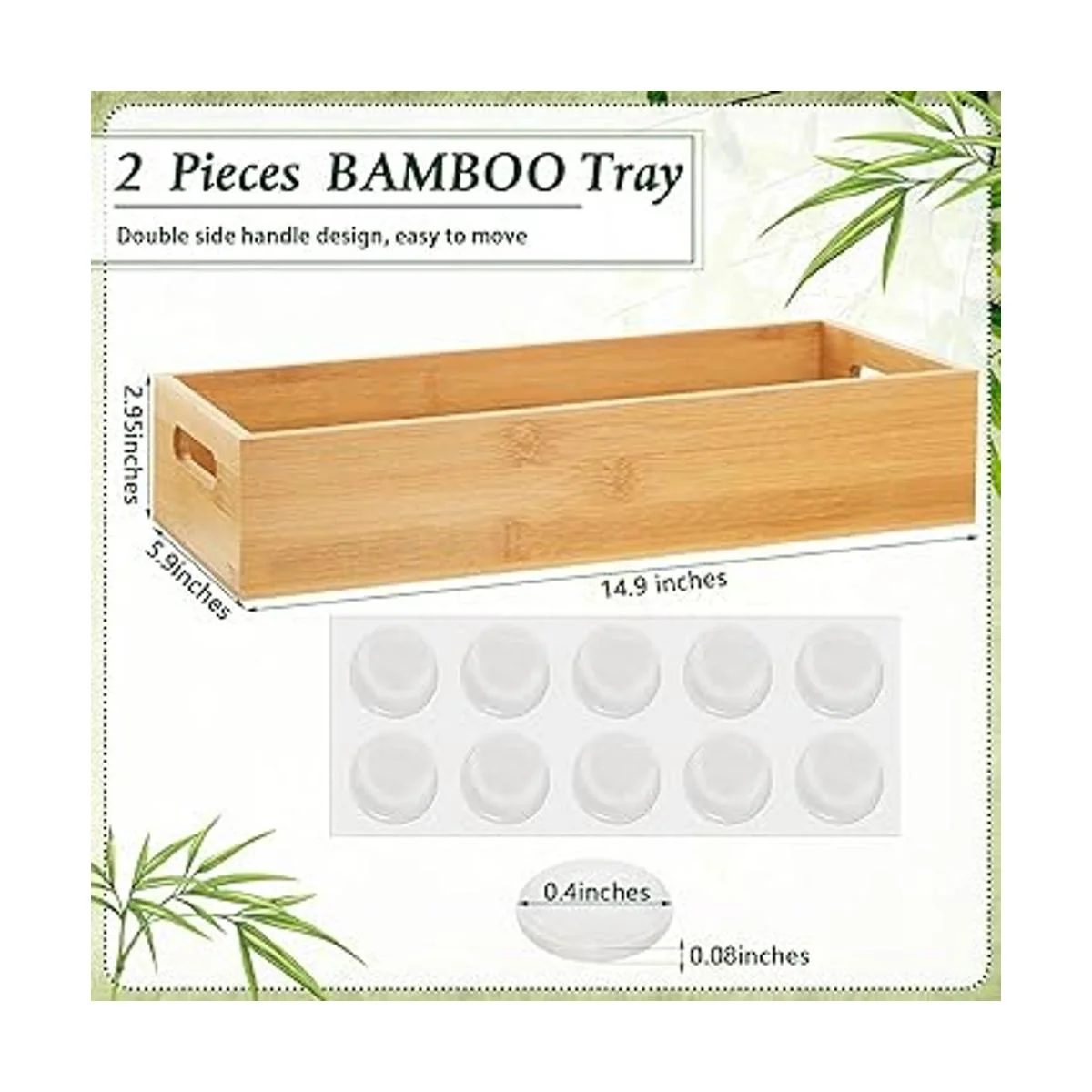 Tamaño adecuado: cada organizador de caja de bambú mide aproximadamente 14.9 x 5.9 x 2.9 pulgadas, el ancho y la profundidad adecuados es útil para almacenar una variedad de artículos en múltiples lugares