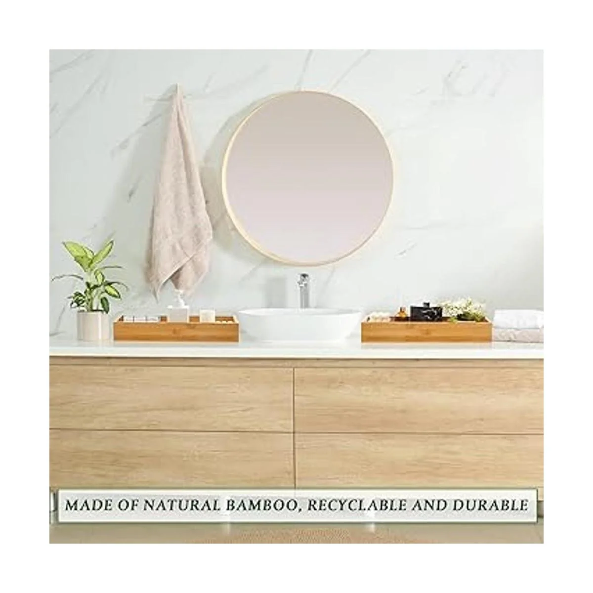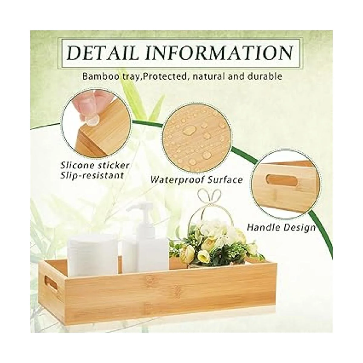 2 bandejas de bambú para tanque de inodoro, organizador de baño de bambú, cesta de papel higiénico de madera con asas, caja de baño de bambú con 10 almohadillas antideslizantes de silicona para accesorios de baño
